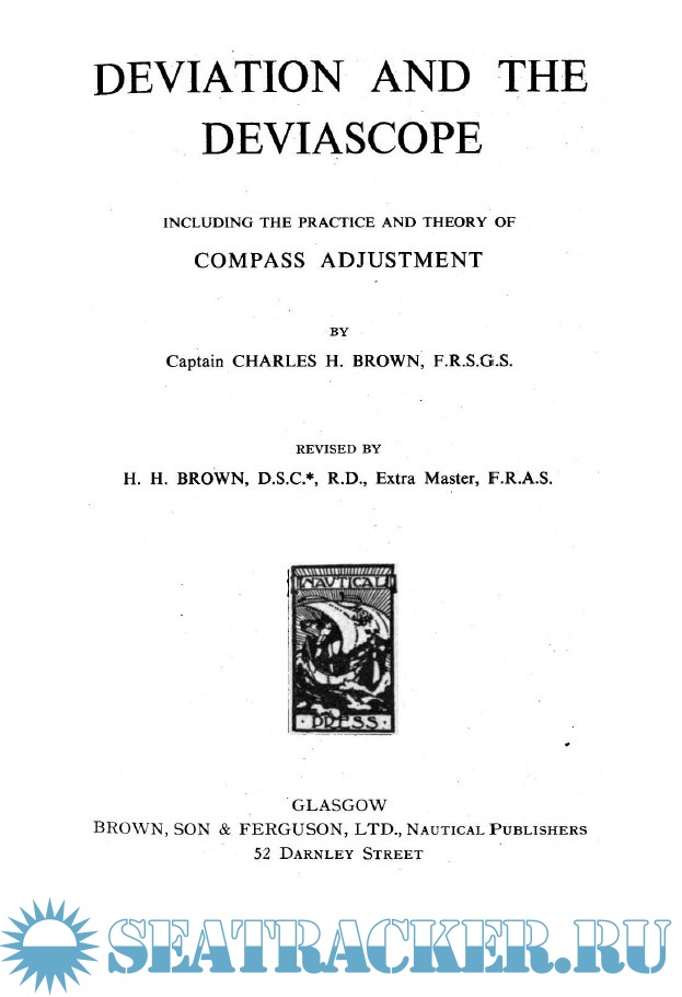 Year: 19XX Language: english Author: Capt. Charles H. Brown Genre: Handbook Publisher: Brown, Son & Ferguson Ltd. Format: PDF Quality: Scanned pages Pages count: 50 Description: Perhaps no navigational subject lends itself more readily to experimental work in a laboratory than that of compass adjustment. The effect of the ship magnetism on the compass can be demonstrated in all its phases and the subject revealed to the student in a more satisfactory manner than is possible on board ship, and where apparatus, such as shown in the frontispiece, is available for outside work, the several methods for ascertaining the deviation and the process of compensation may be performed ashore in precisely the same way as practiced by adjusters when swinging ship. This book is arranged on the lines followed usually in Navigation schools when presenting the subject to students attending short courses of instruction. The work is mainly descriptive and students are encouraged to frame an answer to the questions given in the book immediately on reading the chapter to which they relate.