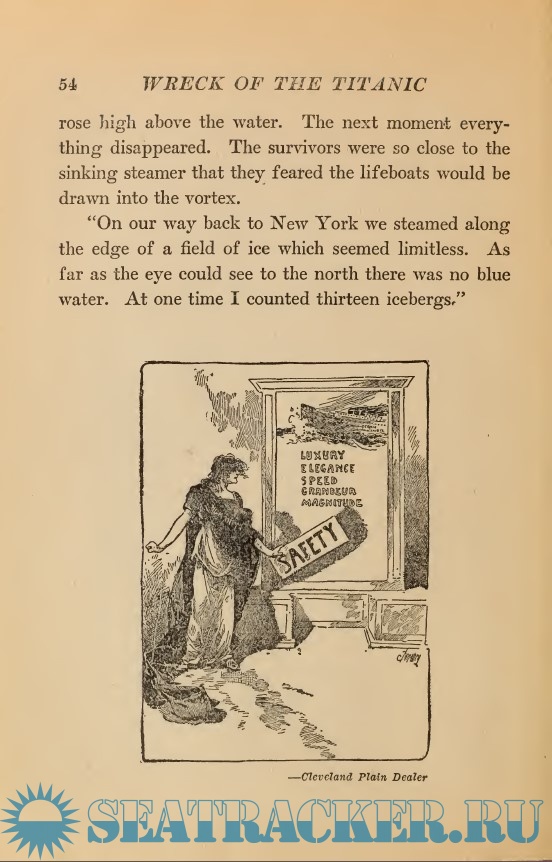 Giving exciting escapes from death and acts of heroism not equalled in ancient or modern times told by The Survivors. Including history of Icebergs, the terror of the seas, wireless telegraphy and Modern Shipbuilding.