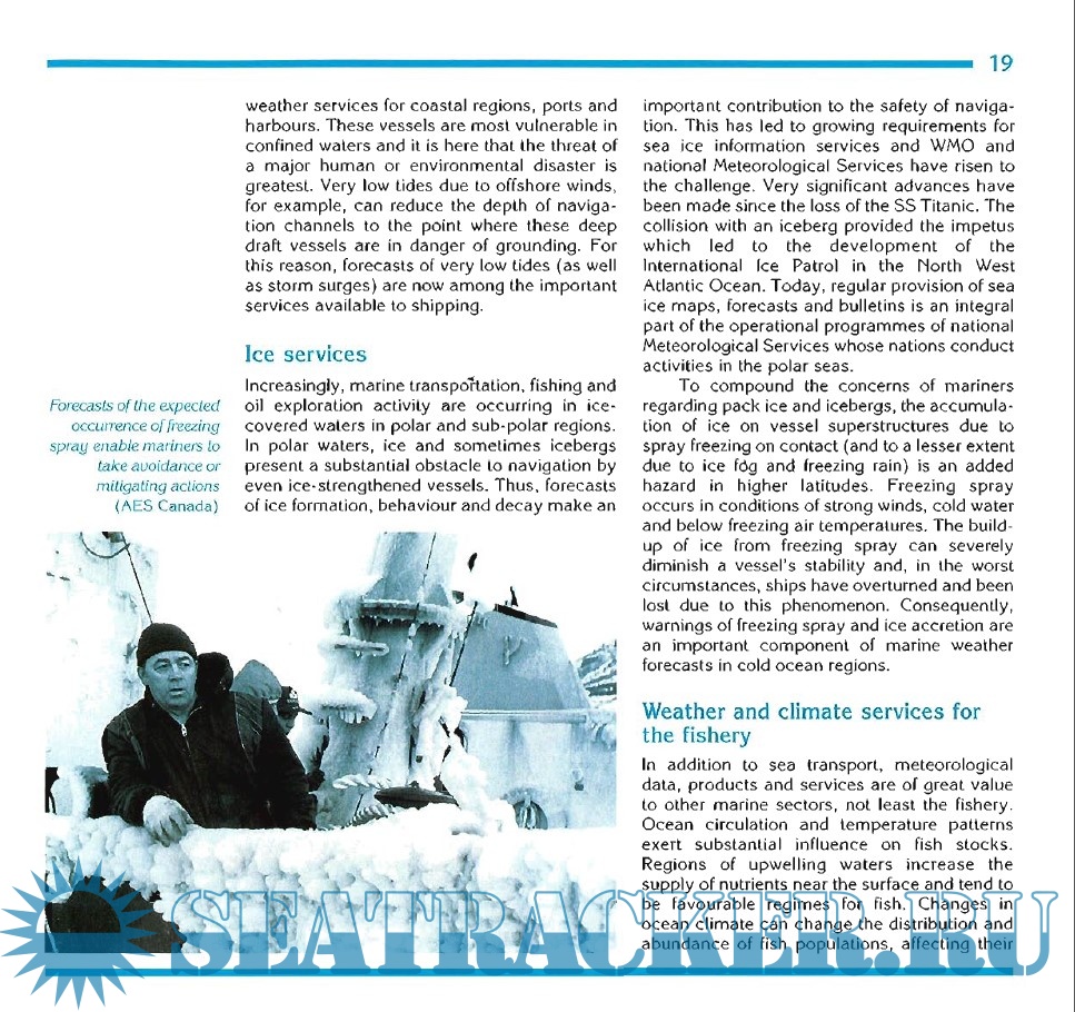 • Foreword • Introduction • Weather, Climate and the Oceans • People and the Oceans • The Development of the Oceans • The Coastal Zone • Weather, Climate and Navigation • Marine Meteorological Services • Climate Variability, Climate Change and the Oceans • Conclusion