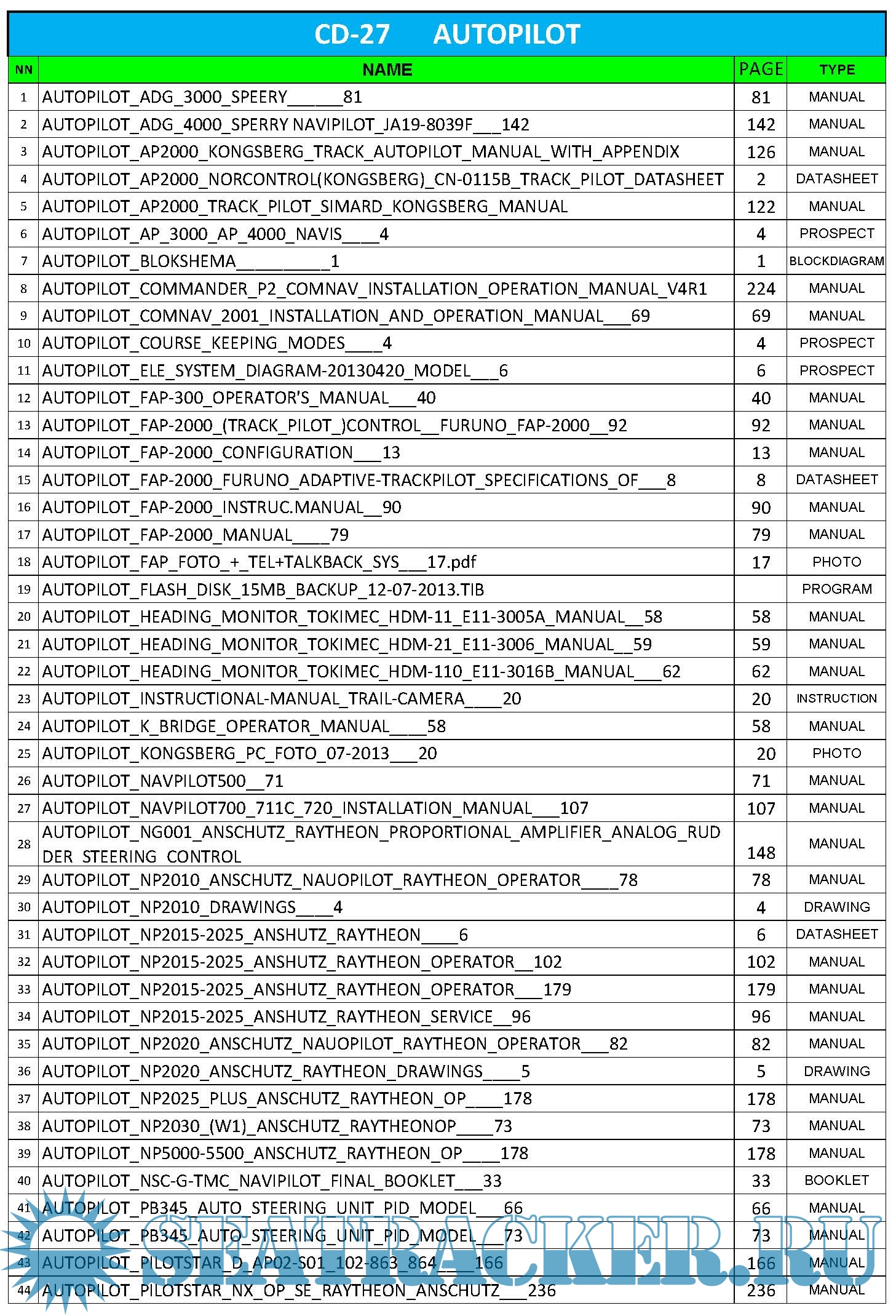 Description: На диске собрана техническая литература по авторулевым различного типа (как старые так и современные ) , как учебная так и технические описания. Есть инструкции по установке и настройке авторулевых ( на русском и английском языках).