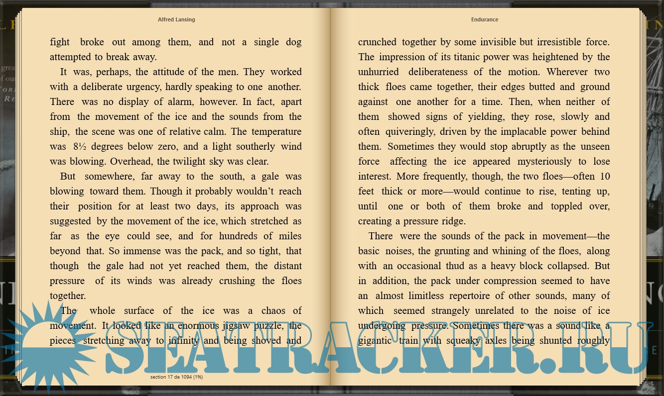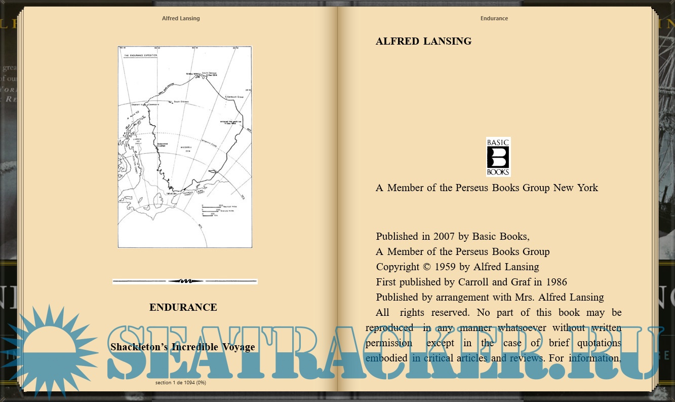 Year: 1959 Language: english Author: Alfred Lansing Genre: History Publisher: Basic Books ISBN: 978-0-7867-0621-1 Format: EPUB Quality: eBook Pages count: 1094 Description: In August 1914, polar explorer Ernest Shackleton boarded the Endurance and set sail for Antarctica, where he planned to cross the last uncharted continent on foot. In January 1915, after battling its way through a thousand miles of pack ice and only a day's sail short of its destination, the Endurance became locked in an island of ice. Thus began the legendary ordeal of Shackleton and his crew of twenty-seven men. When their ship was finally crushed between two ice floes, they attempted a near-impossible journey over 850 miles of the South Atlantic's heaviest seas to the closest outpost of civilization. In Endurance, the definitive account of Ernest Shackleton's fateful trip, Alfred Lansing brilliantly narrates the harrowing and miraculous voyage that has defined heroism for the modern age.