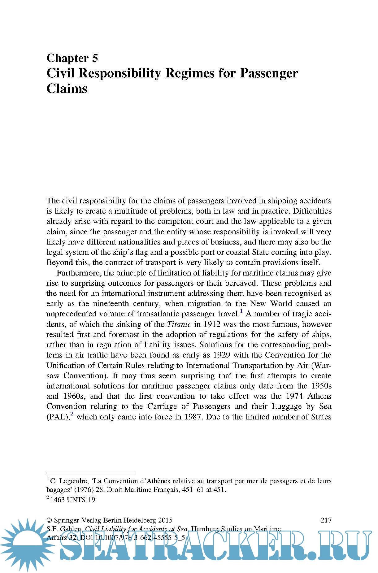 Description: This book presents a study on civil liability for accidents at sea, with a focus on the interests of parties that are not contractually participating in the maritime enterprise. Shipping and the maritime offshore industry are among the most international businesses in the world, and the operation of ships and facilities at sea can involve very different interests in a wide variety of relationships.