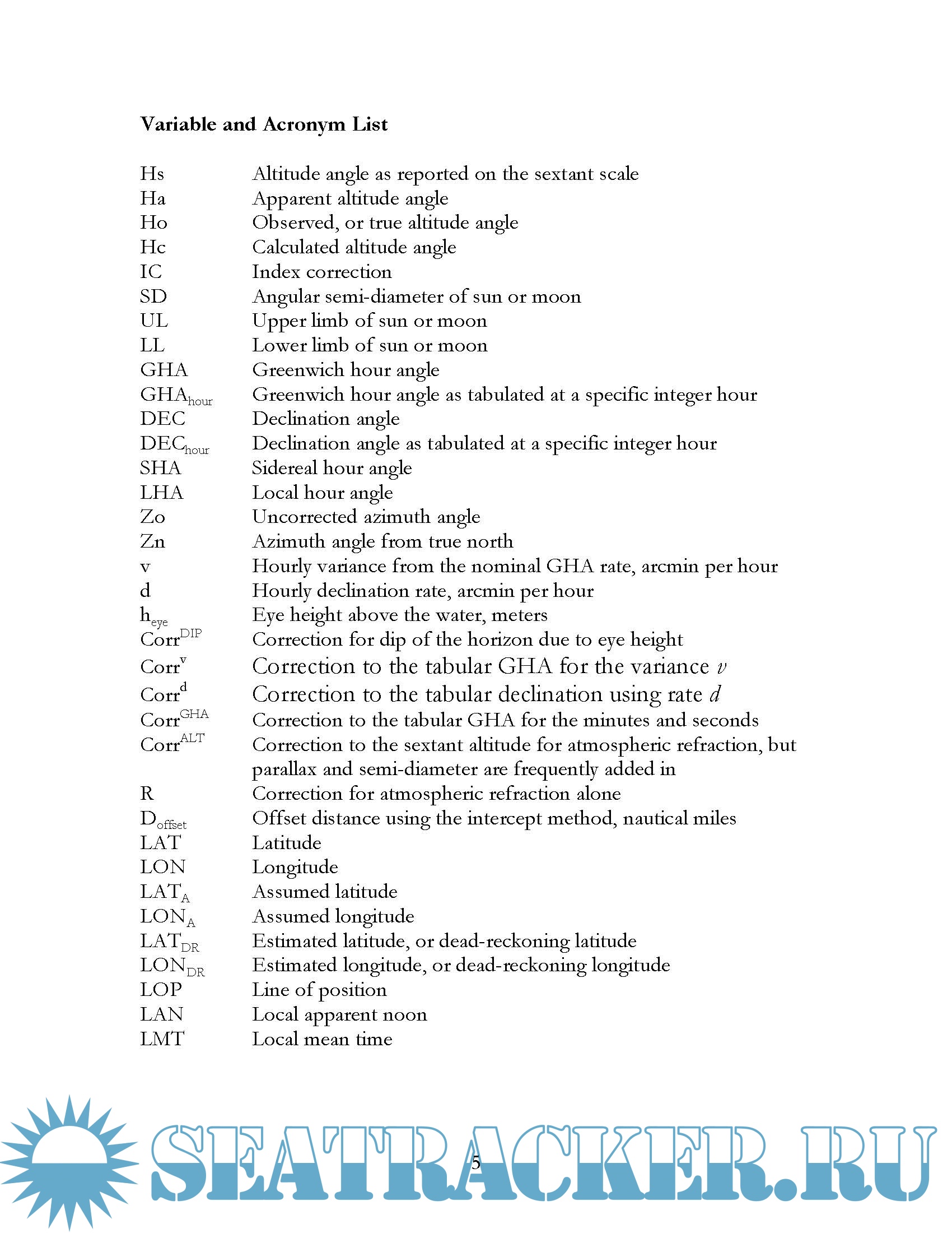 Description: This book is dedicated simply to removing the cloak of mystery; to teach the concepts, some interesting history, the techniques, and computational methods using the simple pocket scientific calculator (or better yet make your own navigation software). And yes, also how to build your own navigational tools.