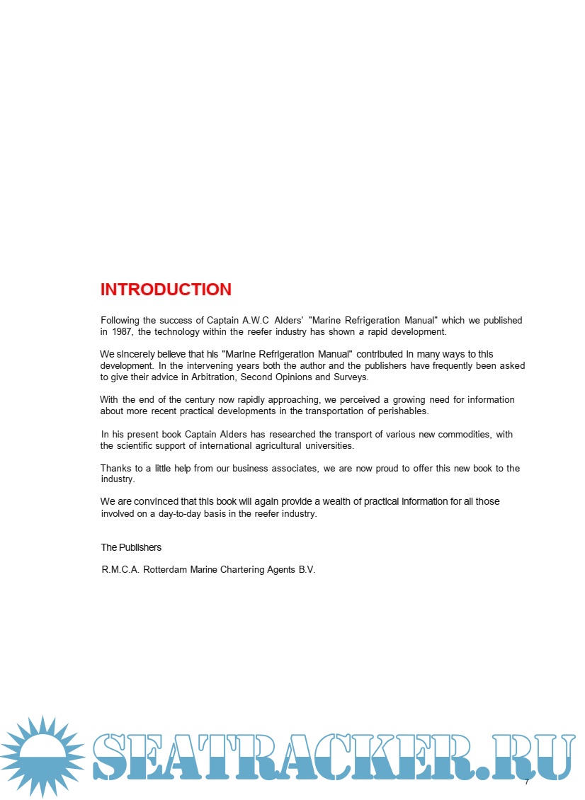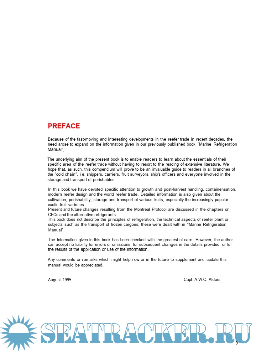 This book does not describe the principles of refrigeration, the technical aspects of reefer plant or subjects such as the transport of frozen cargoes.