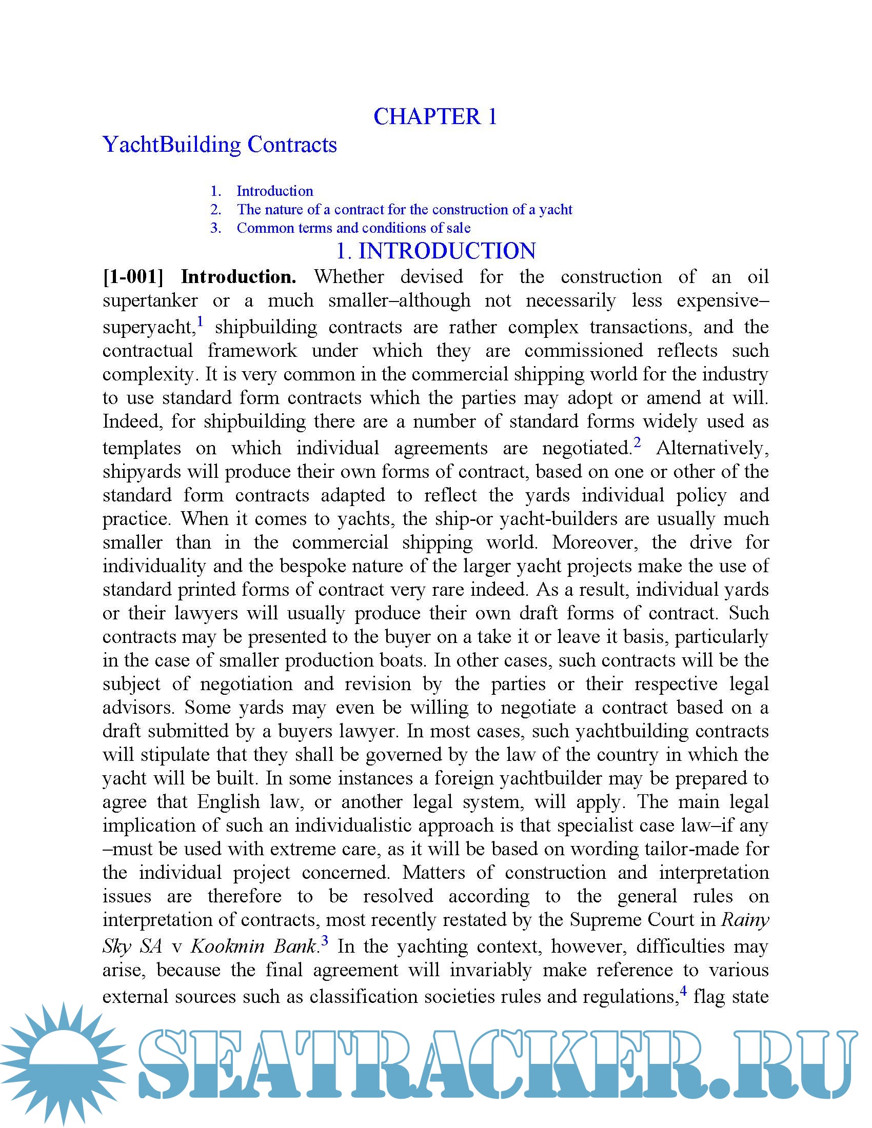 -The Law of Yachts and Yachting is highly comprehensive - despite its main focus on contract and tort law, it contains references to public law and international law and practice