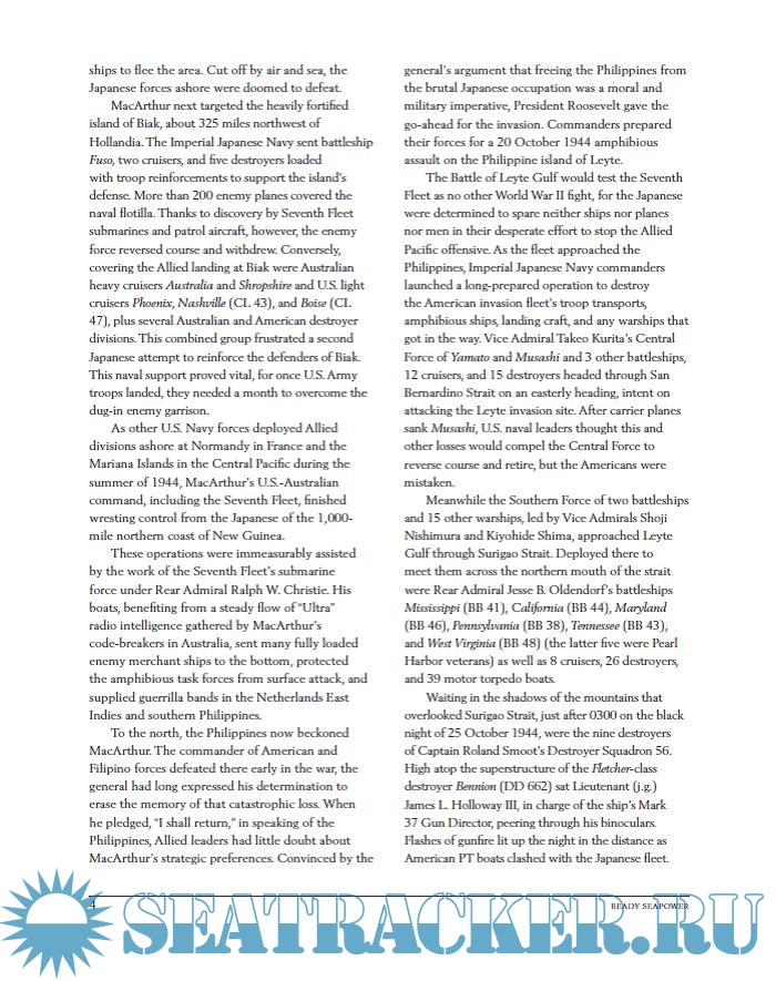 Year: 2012 Language: english Author: Edward J. Marolda Genre: History Publisher: US Naval History & Heritage Command Edition: First ISBN: 9781780398921 Format: PDF Quality: eBook Pages count: 216 Description: This book is full in color and black and white images. It is a historical study that covers the service in the Asia-Pacific region of the U.S. Seventh Fleet during the 20th and 21st centuries up to 2010. The Fleet saw combat in nearly every major battle of World War II in the Pacific as well as in the Cold War conflicts in Korea and Vietnam. Today the Fleet acts as a deterrence to aggressor nations in the region, provides humanitarian relief in times of disaster, participates in joint and combined exercises, and conducts counter-terrorism and anti-pirate operations. The author as a formal Senior Historian of the US Navy, brings to the topic more than forty year of relevant scholarship and experience.