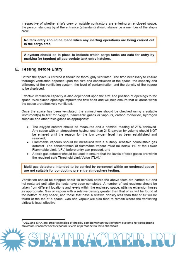 This guidanceisbased on the relevant section of the ICS Tanker Safety Guide (Chemicals), and may be found to be useful information for enclosed space entry on a variety of ship types. For operations particularly on chemical tankers the original text of the ICS Tanker