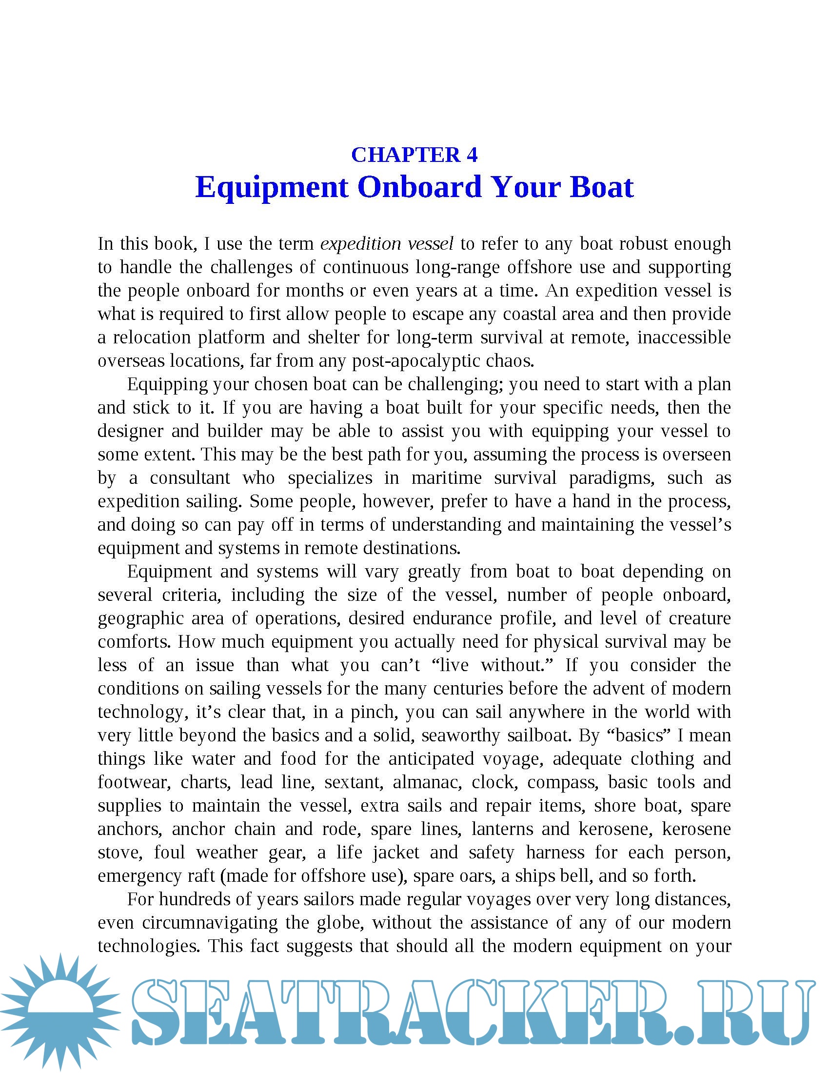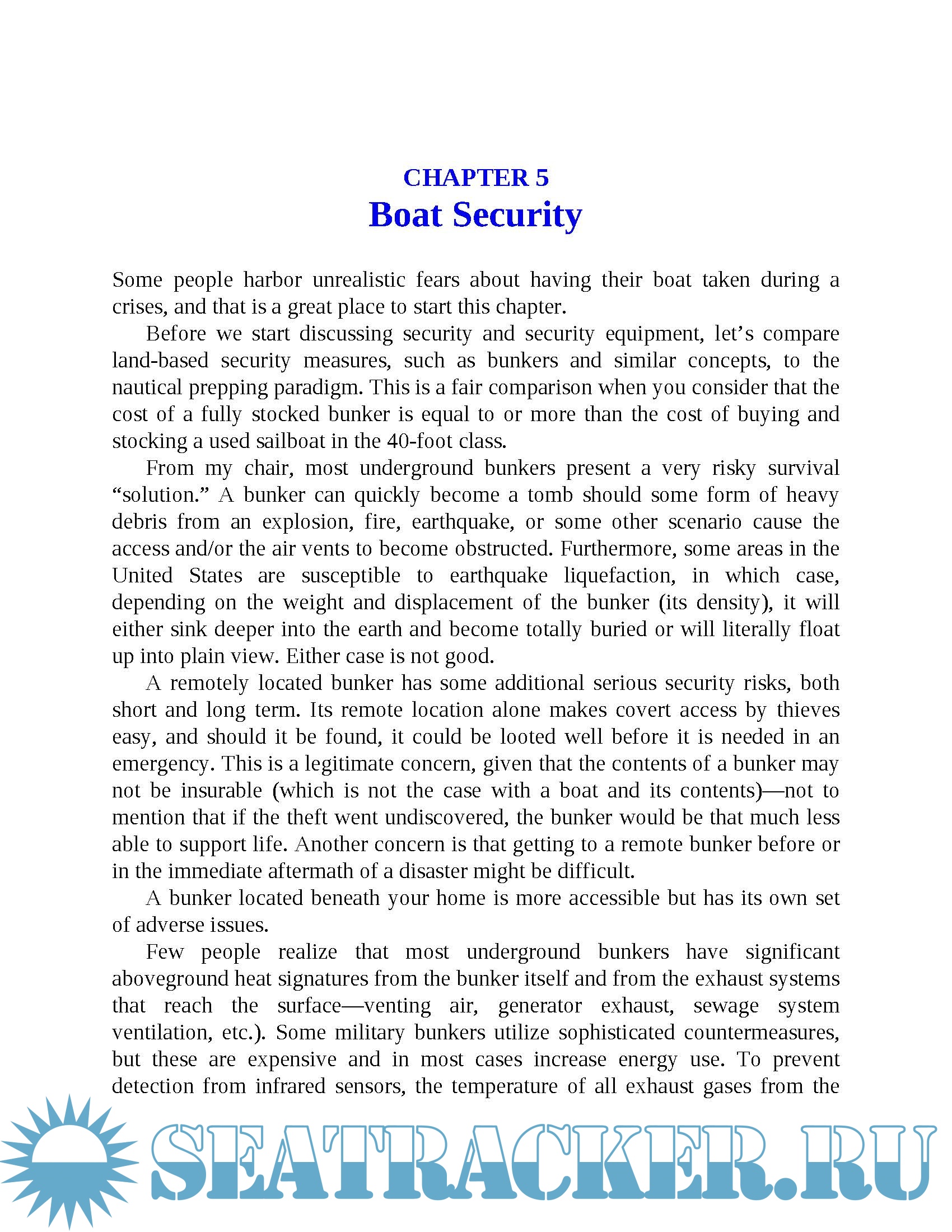 Description: When a catastrophic disaster strikes and lawless looting puts land-based shelters at risk, escaping on a boat is absolutely the best way to keep your family together, self-sufficient and safe.