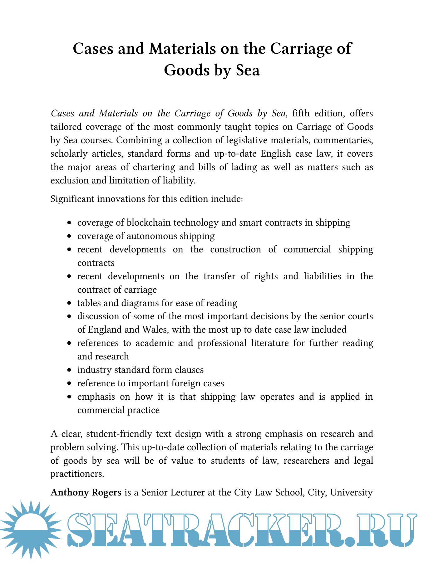 Description: Cases and Materials on the Carriage of Goods by Sea, fifth edition, offers