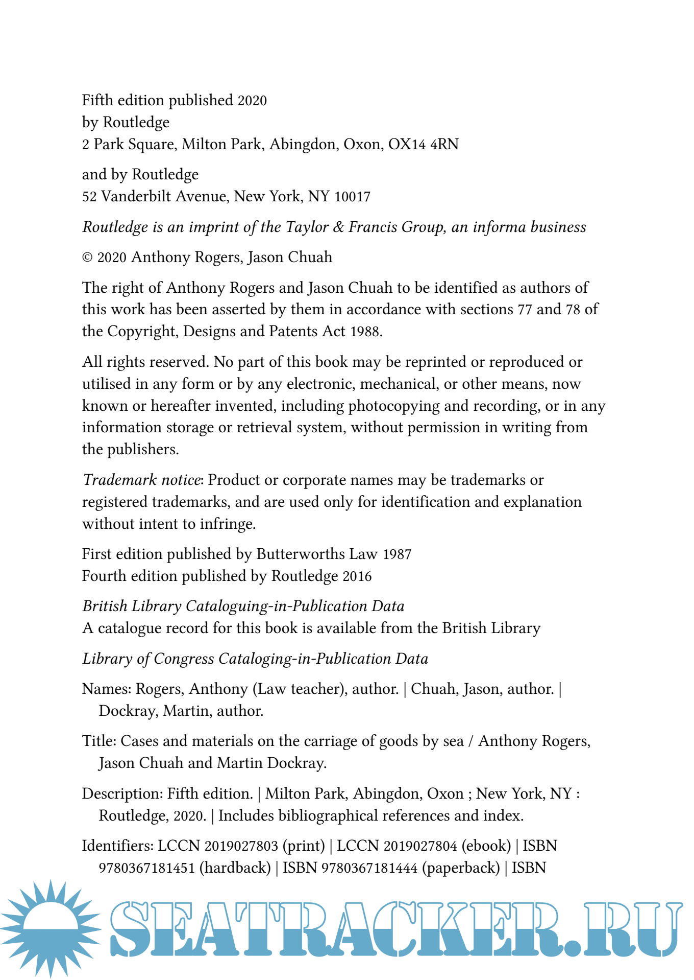 Cases and Materials on the Carriage of Goods by Sea _5th ed. 2019_by Anthony Rogers, Jason Chuah and Martin Dockray