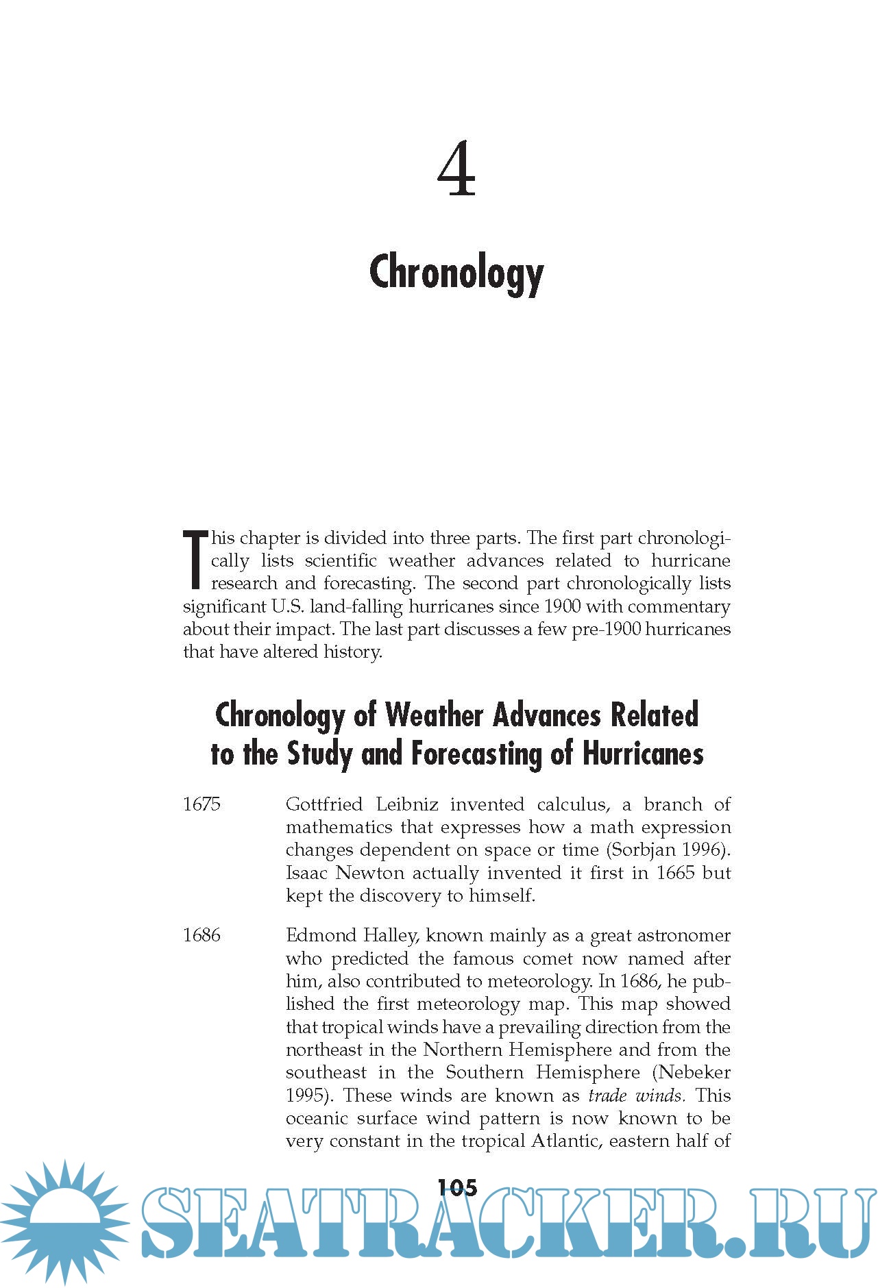  A unique three-part chronology of the science of hurricanes, from the time of Sir Isaac Newton to the latest discoveries in quantitative climatology