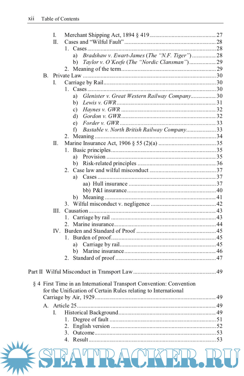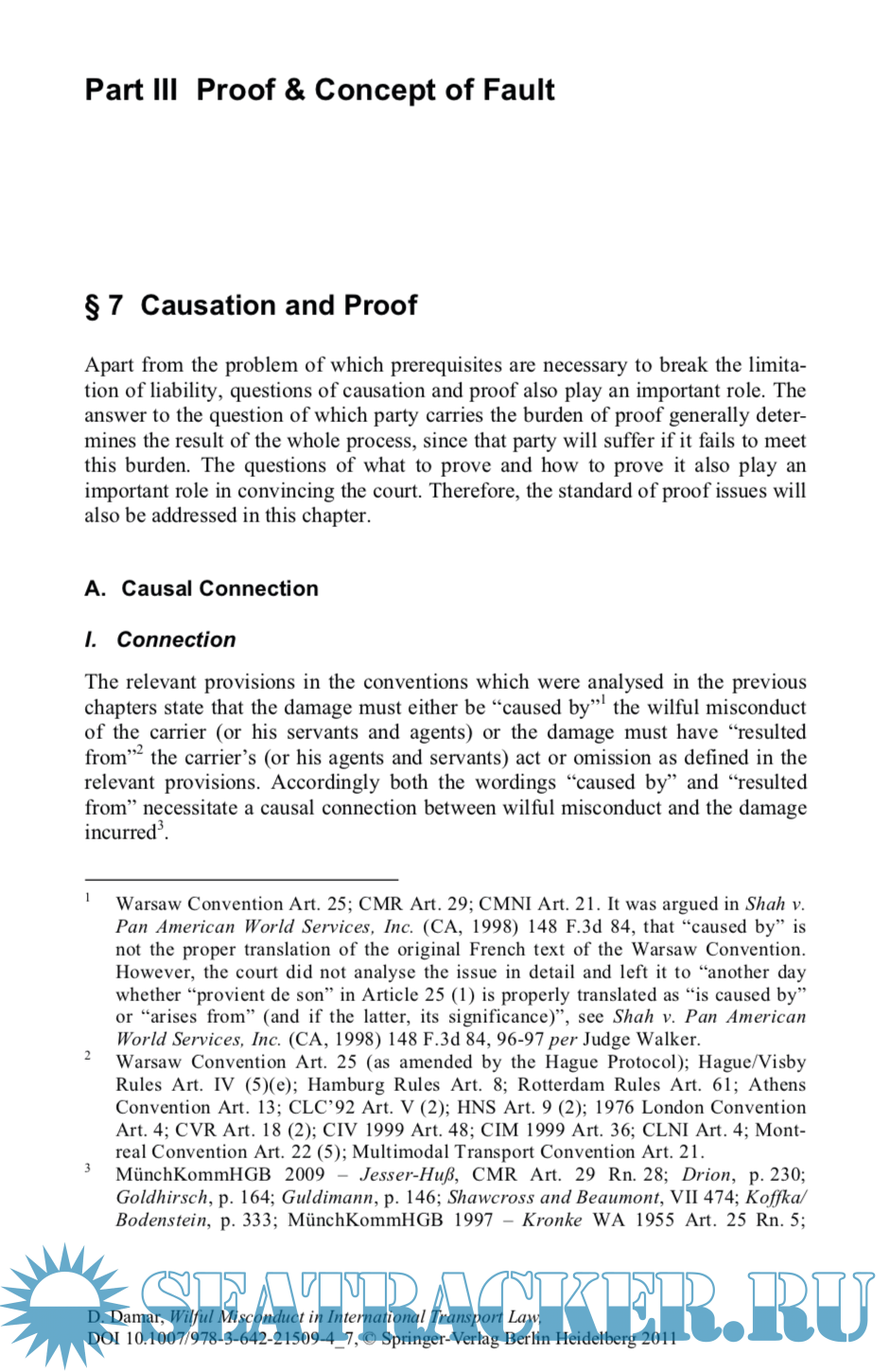 Year: 2011 Language: english Author: Duygu Damar Publisher: Springer Edition: 1st ISBN: 978-3-642-21509-4 Format: PDF Quality: OCR with errors Pages count: 316 Description: The main rationale of the conventions on international transport law is to limit the liability of the carrier. However, an aspect common to these conventions is that in cases of "wilful misconduct" the carrier is liable without any financial limitation. "Wilful misconduct" denoting a high degree of fault is an established term in English law. The Convention for the Unification of Certain Rules relating to International Carriage by Air (Warsaw Convention) of 1929 was the first international convention on transport law where the term was employed. A definition of "wilful misconduct", which can be found in later conventions regarding carriage of goods and passengers as well, was implemented in the Hague Protocol of 1955, amending the Warsaw Convention. However, the question as to exactly which degree of fault constitutes "wilful misconduct" has to date remained controversial and unanswered. This work seeks to answer this question. To this end, the historical background of the term, together with its function and role in marine insurance law, case law and international transport law, are examined from a comparative perspective. Additional info: Hamburg Studies on Maritime Affairs Vol. 22