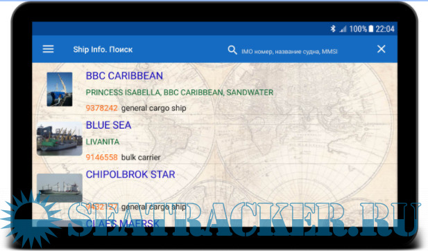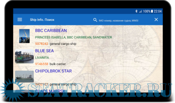 Достаточно ввести название судно, настоящее или прошлое, MMSI или IMO номер.