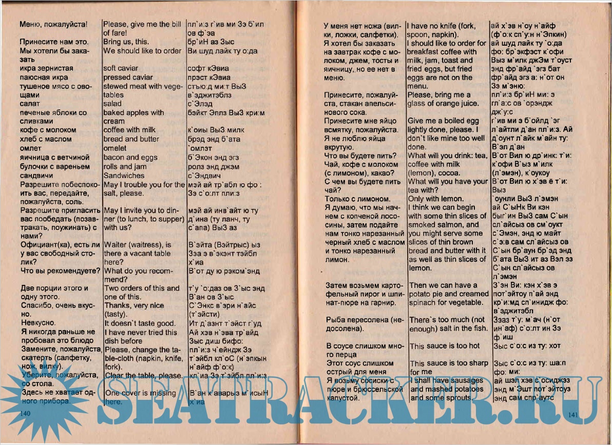 Рядом с каждой фразой или отдельным словом дается соответствующее произношение русскими буквами.