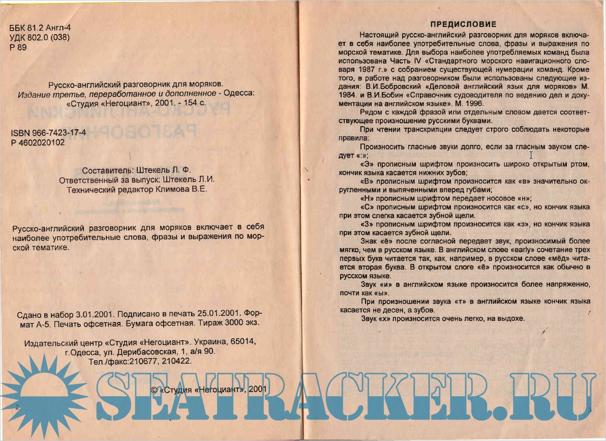 СЛОВАРЬ-РАЗГОВОРНИК ДЛЯ ПОДАЧИ КОМАНД И РАЗГОВОРОВ НА БОРТУ СУДНА