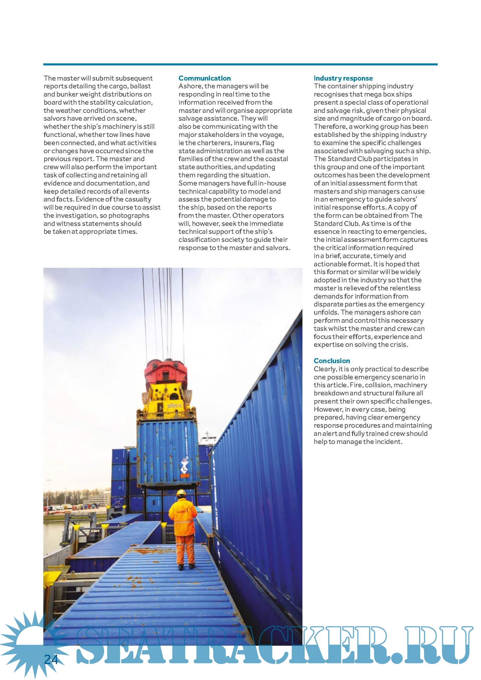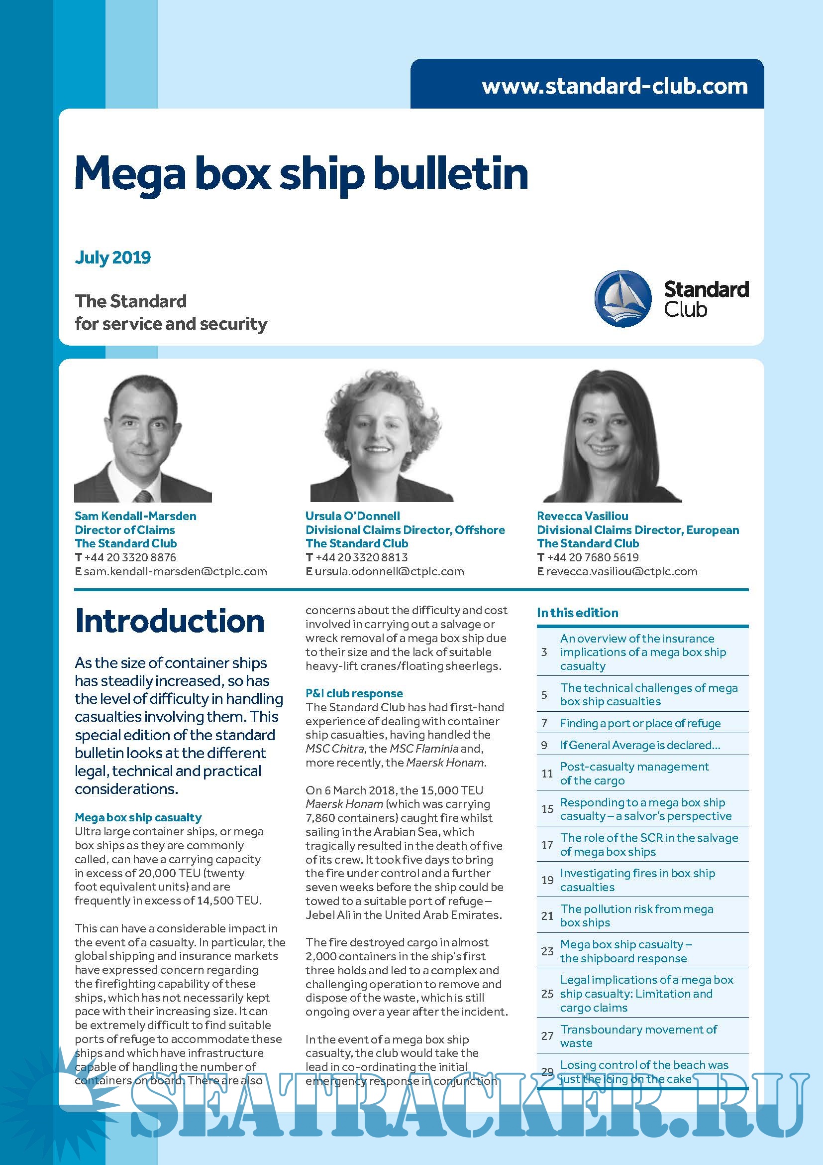 Description: As the size of container ships has steadily increased, so has the level of difficulty in handling casualties involving them. This special edition of the standard bulletin looks at the different legal, technical and practical considerations.