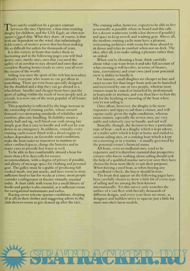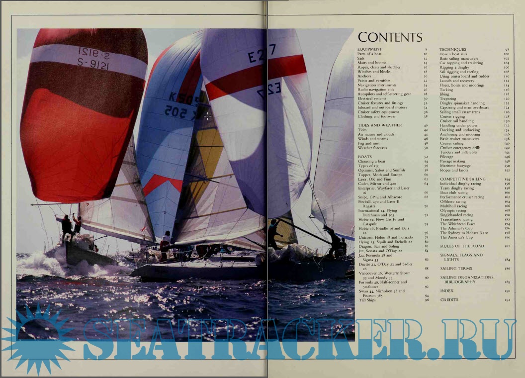 Description: Covers, in detail, sailing theory, rigging, types of craft, safety measures, maneuvering, knots, weather, and buying a boat