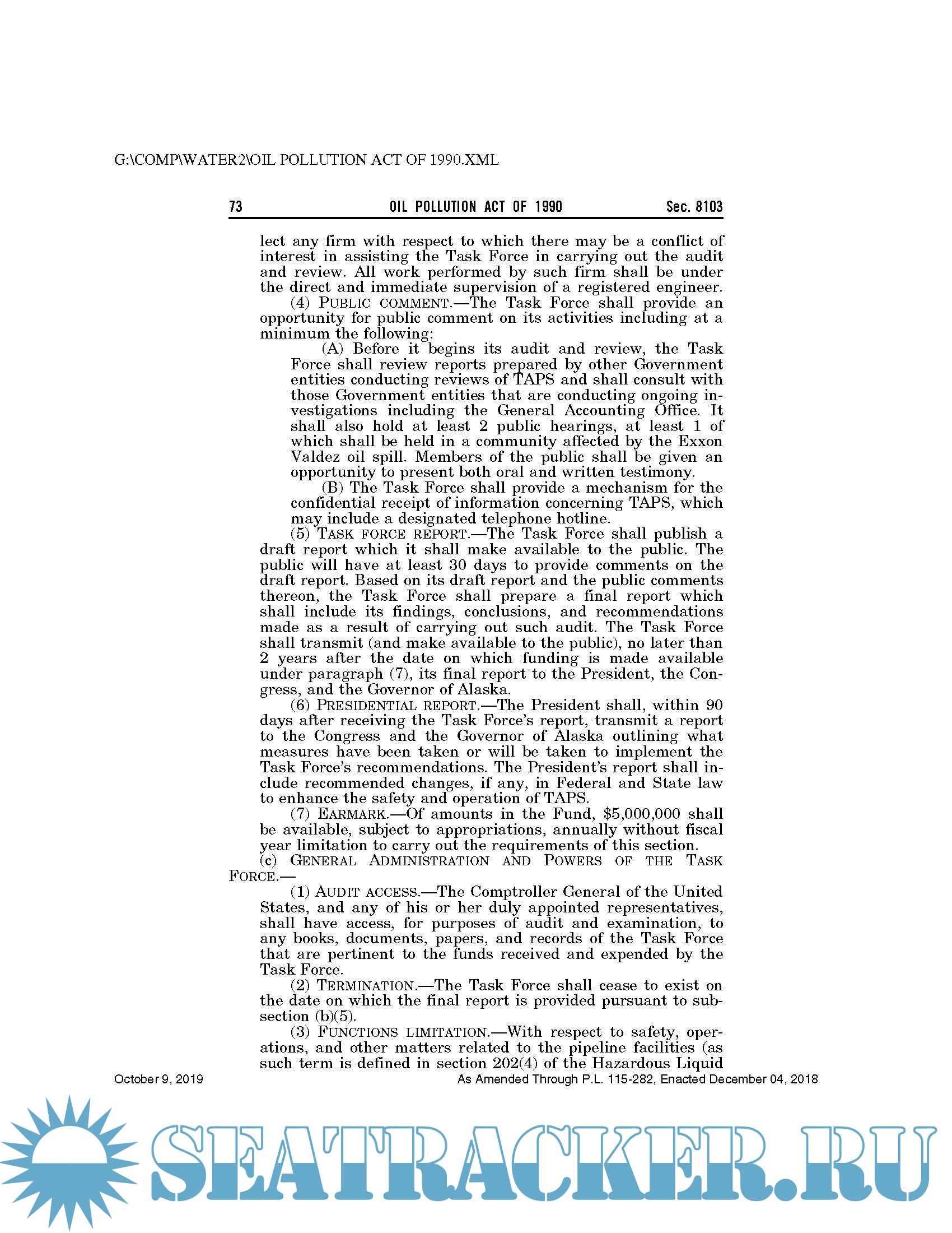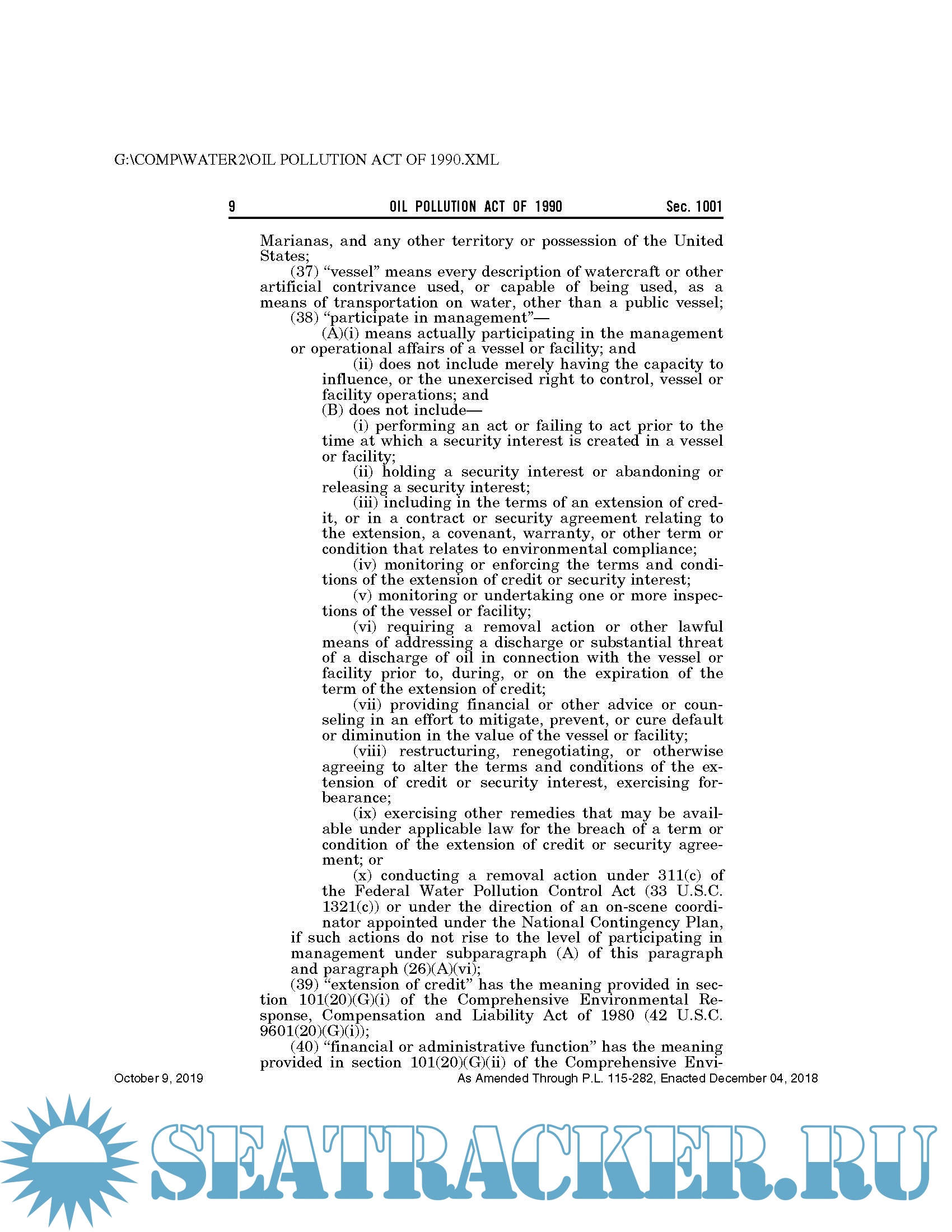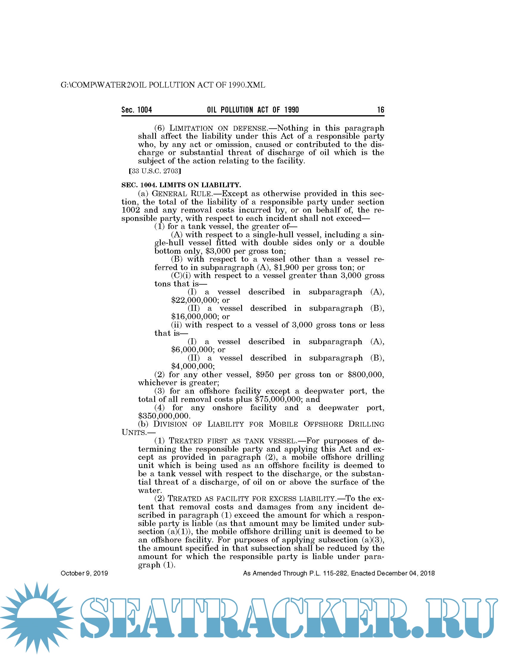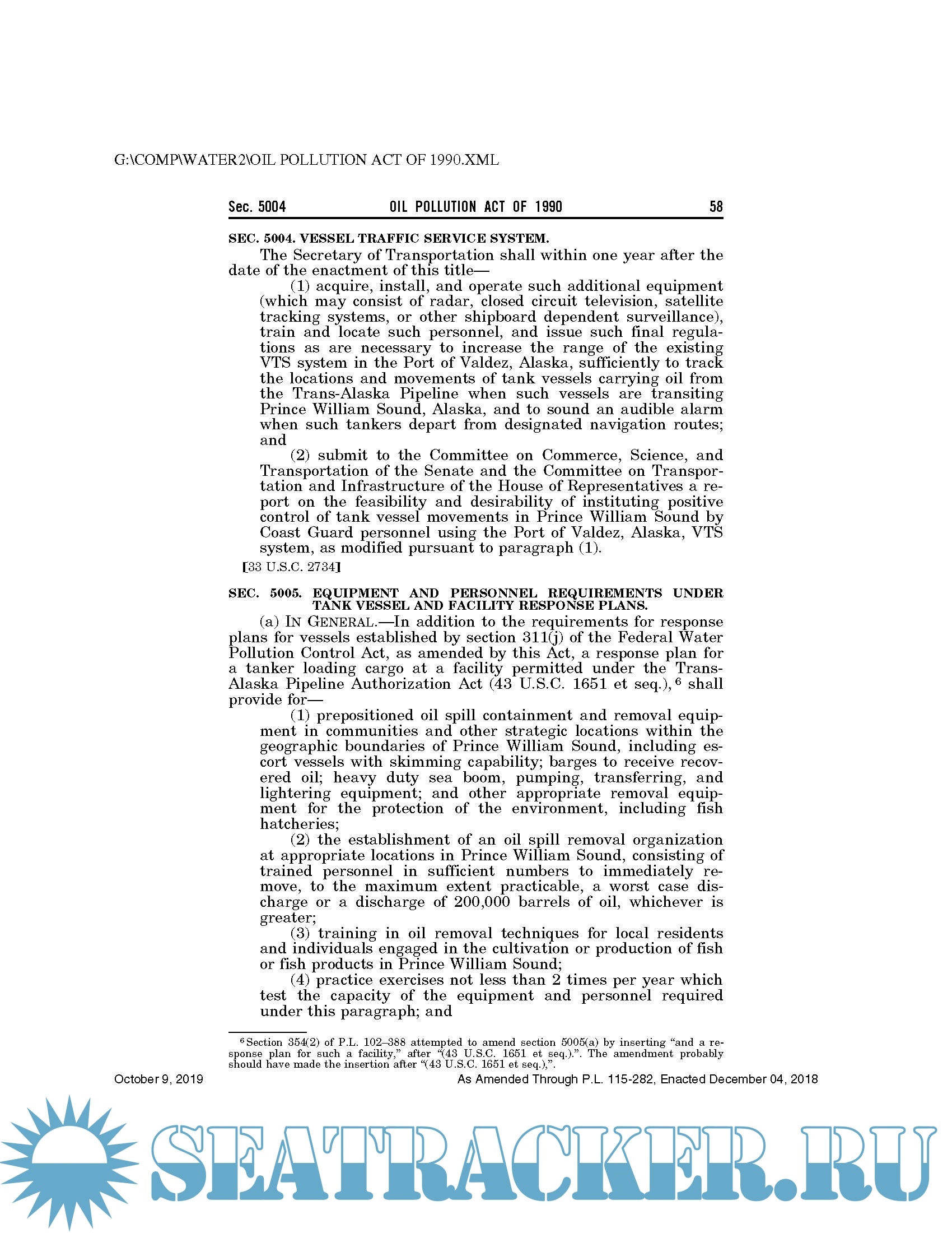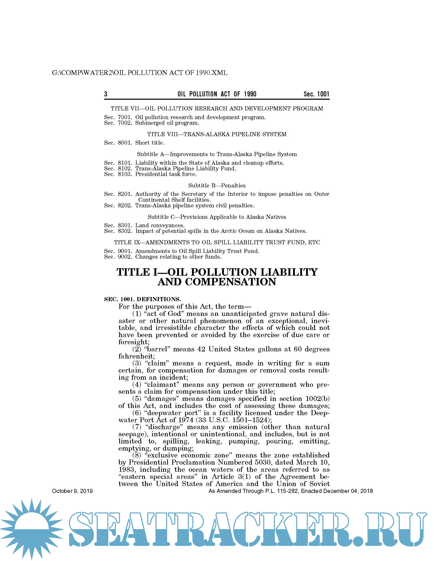 Description: OIL POLLUTION ACT OF 1990 [Public Law 101-380] As Amended Through P.L. 115–282, Enacted December 04, 2018