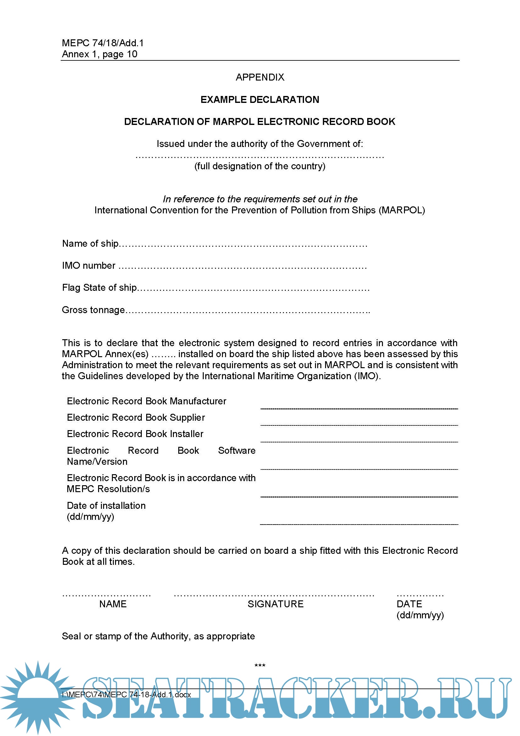 Page 10 Appendix Example Declaration Of Marpol Electronic Record Book