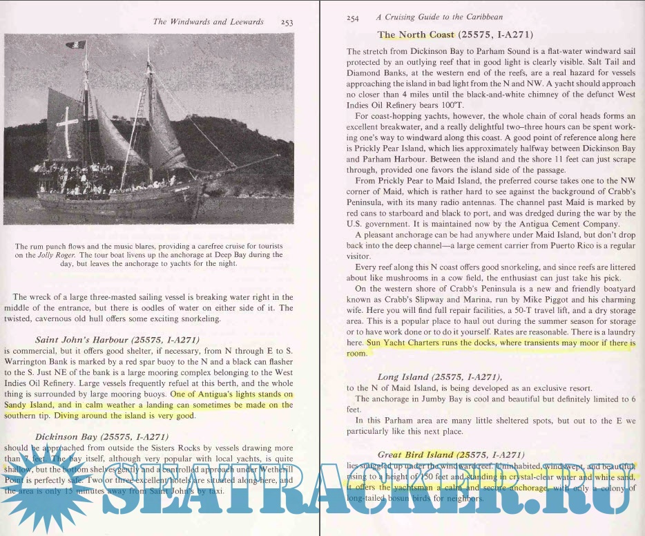 Year: 1993 Language: english Author: William T. Stone and Anne M. Hays Genre: Guide Publisher: Sheridan House Inc. Edition: Second ISBN: 0-924486-57-0 Format: PDF Quality: Scanned pages Pages count: 549 Description: This cruising guide covers the Caribbean basin from the Virgin Islands, to the popular Winwards and Leewards, to the fast growing yachting mecca of Venezuela and the island groups around South America's northern coast.