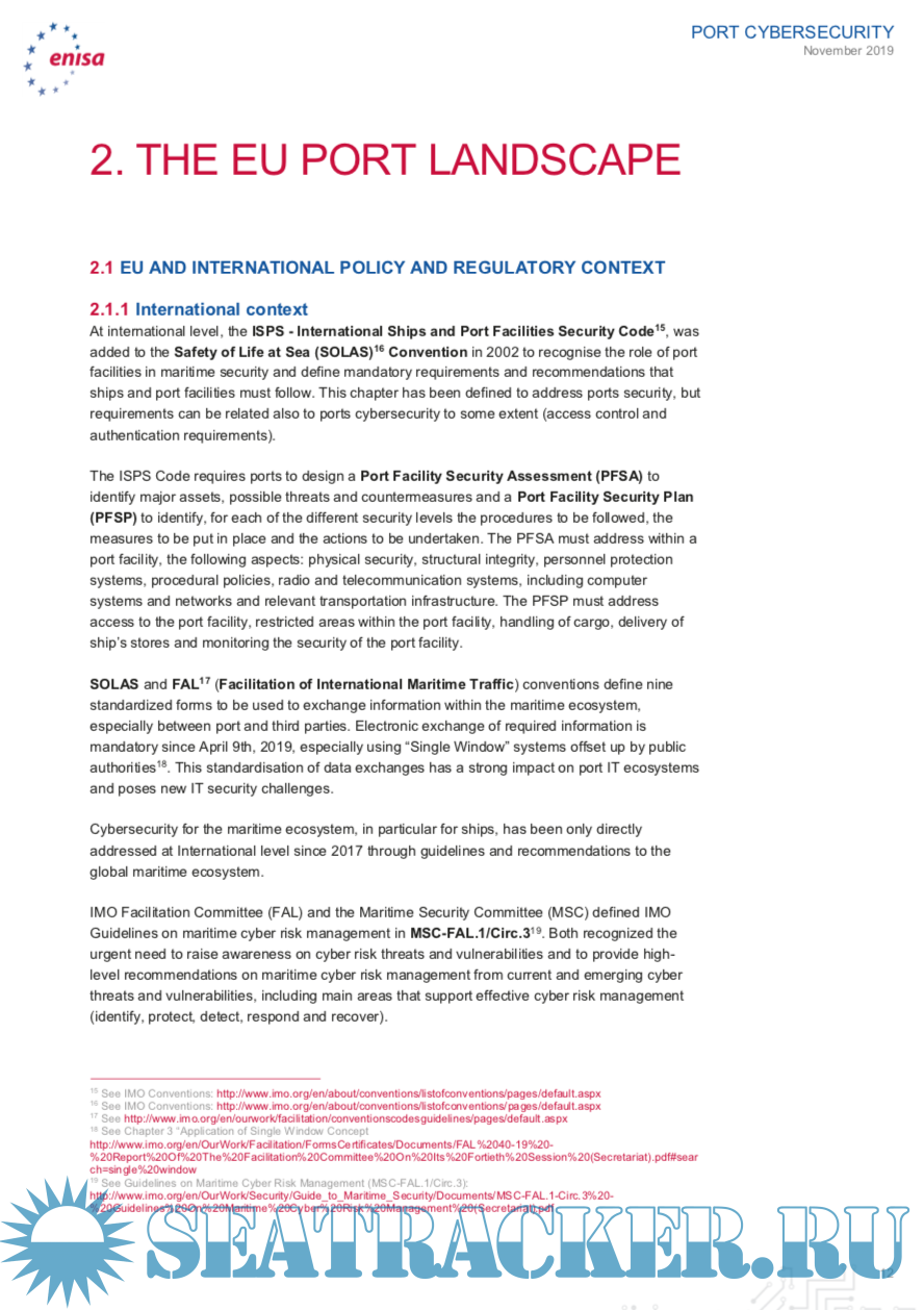 Description: Developed in collaboration with several EU ports, this report intends to provide a useful foundation on which CIOs and CISOs of entities involved in the port ecosystem, especially port authorities and terminal operators, can build their cybersecurity strategy. The study lists the main threats posing risks to the port ecosystem and describes key cyber-attack scenarios that could impact them. This approach allowed the identification of security measures that ports shall put in place to better protect themselves from cyberattack. The main measures identified intend to serve as good practices for people responsible for cybersecurity implementation. The study can be useful for other stakeholders in the broader community within the port ecosystem, such shipping companies and maritime policy makers.