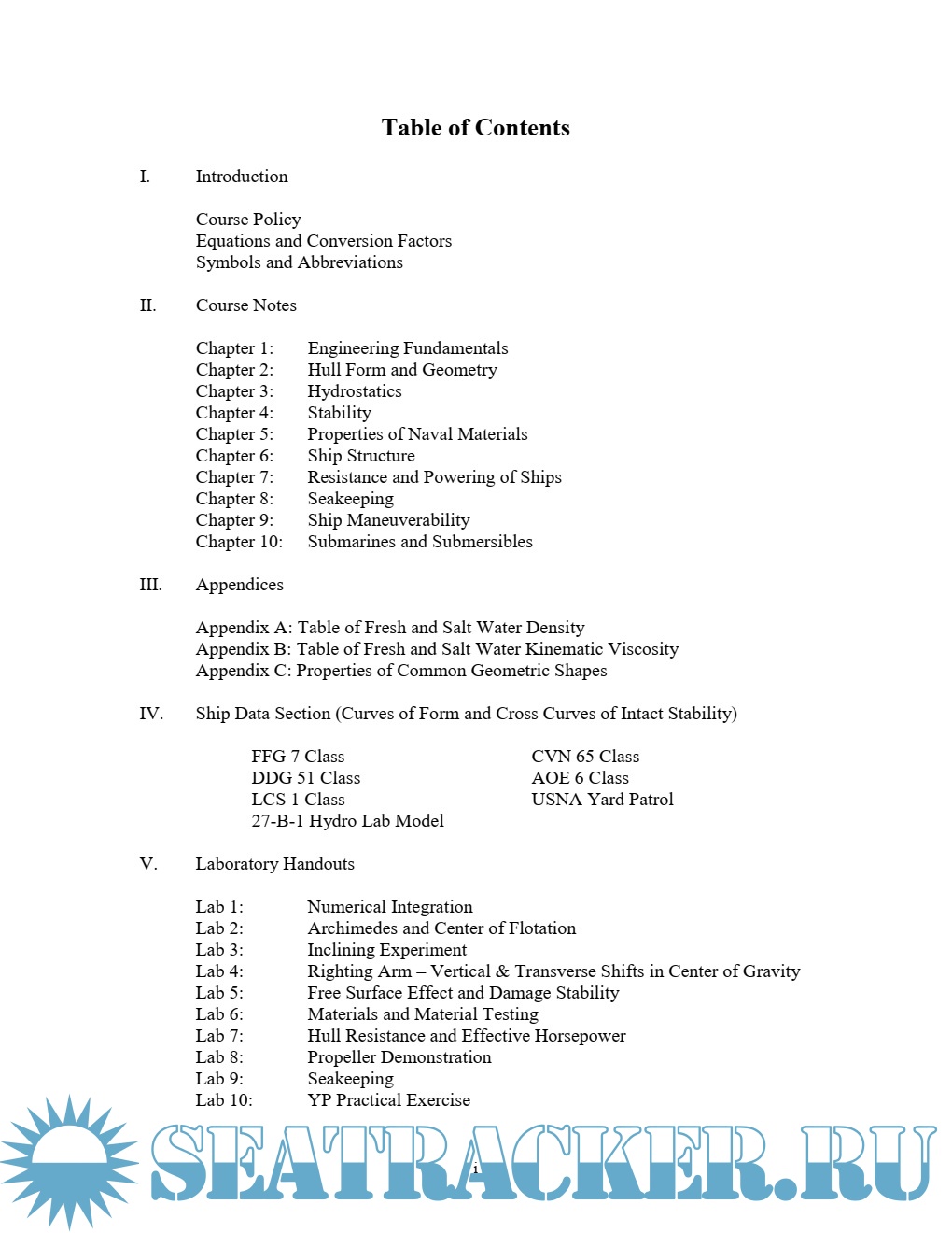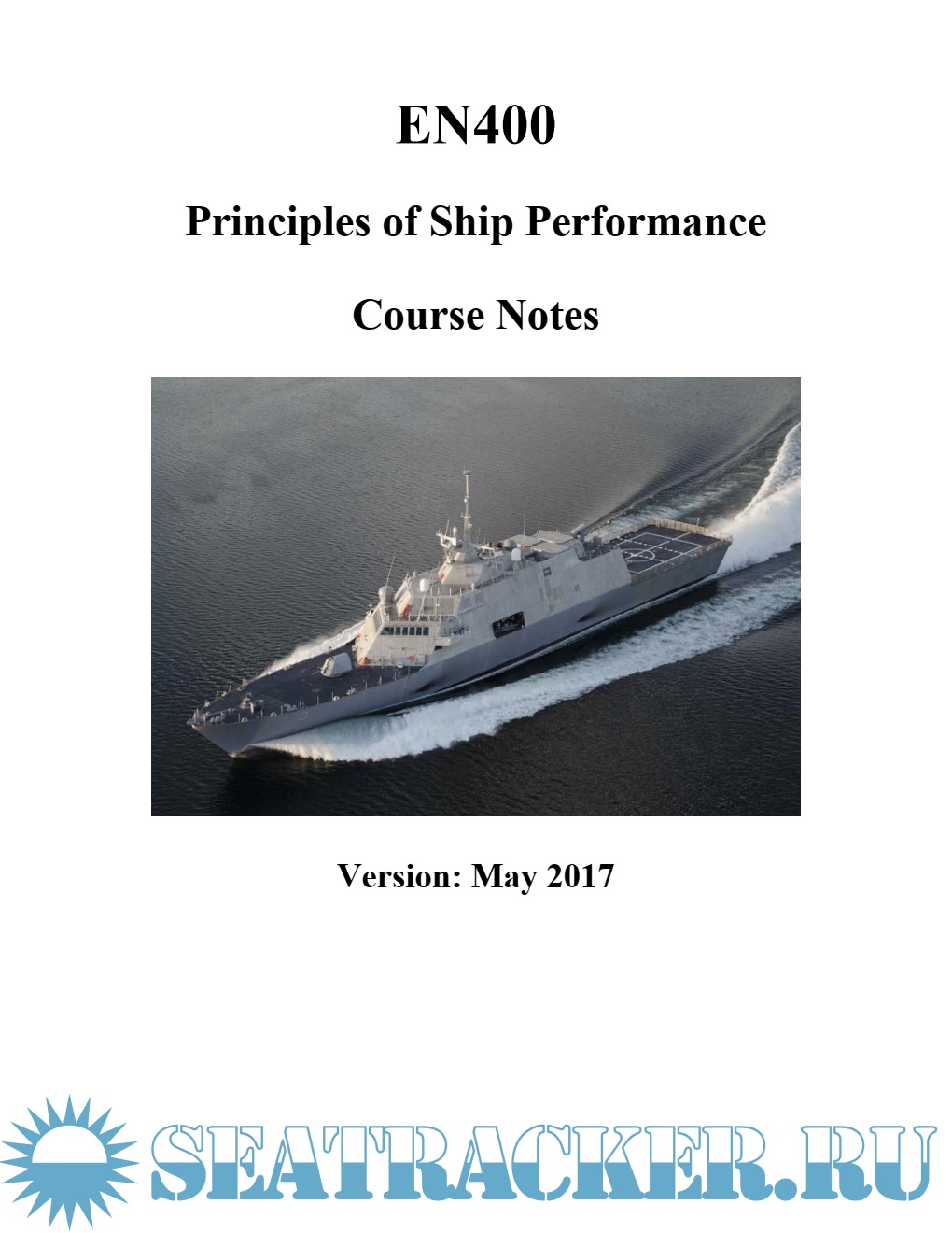 Year: 2017 Language: english Author: EN400 Course Coordinator Genre: Textbook Publisher: EN400 Format: PDF Quality: eBook Pages count: 477 Description: A Naval Officer benefits from a solid foundation in engineering principles, whether their duties are to make policy decisions, command skilled enlisted personnel, maintain and operate state-of-the-art equipment or partner with civilian technicians and engineers. USNA recognizes this fact and consequently maintains a requirement for students majoring in the Division of Mathematics and Science, Division of Humanities and Social Sciences and General Engineering to complete certain engineering courses. Principles of Ship Performance (EN400) is just such a course. Affectionately known as ‘Boats,’ the course is relevant to all future Naval and Marine Corp Officers, regardless of designator. Even if your future career path takes you into the skies or the mud, you will interface with things that float. You have entered a seafaring service. The Course EN400 both develops a general technical foundation and applies these principles specifically to how ships function. EN400 also approaches material to balance the training needs of a future ship operator with the required level of mathematics and science understanding suitable for a Bachelor of Science degree. Students are introduced to a number of different engineering practices including mathematical approximation, graphical interpolation and engineering modeling. These practices may appear difficult to comprehend at first. Remember, they are being taught for a relevant purpose. Course material is organized into chapters which can largely be viewed as ‘stand alone,’ however the information and techniques used in early chapters will be called upon again. The first chapter delivers a basic level of engineering knowledge that students should be familiar with before the course begins. Students are advised to read Chapter 1 before the first day of class, as instructors only provide a brief overview of its contents. If there are areas of Chapter 1 requiring further assistance, raise concerns early and seek extra instruction. The understanding of this pre-requisite information is vital for the Naval Engineering that follows. iii Laboratories EN400 consists of 9 laboratory experiments ranging from computer labs to model boat towing in the hydrodynamics laboratory (hydro lab). They are a vital element in understanding the course material, totaling 40% of the time available per week. The theory and techniques first presented in the classroom will come to life in the lab periods. Many labs have pre-lab sections to bridge this gap between reading, lecture, and experimentation. The theory and techniques to be employed in the lab are explained, and ensuring completion of the pre-lab before any lab leads to a smooth experiment and more enjoyable experience. Instructor Policy Your section instructor will provide their own teaching, examination, and grading policy during one of your first classes. Indeed, the everyday classroom environment is their responsibility. In general, the course provides one homework and one lab per chapter. One quiz is administered between each of the major exam periods. These are not merely an assessment tool for the instructor, but also a means by which students can assess their own progress in the subject, before an exam. Failure to submit work on time will hurt your grade directly, but it will also remove this valuable self-assessment tool. Conclusion The facilities in Rickover Hall are some of the best available anywhere in the world, and instructors and laboratory staff will add a great deal of technical and fleet experience to the course material. Make the most of your time remaining before commissioning. Come prepared to lessons and laboratories. You will only get out of this course the effort you put into it. EN400 Course Coordinator