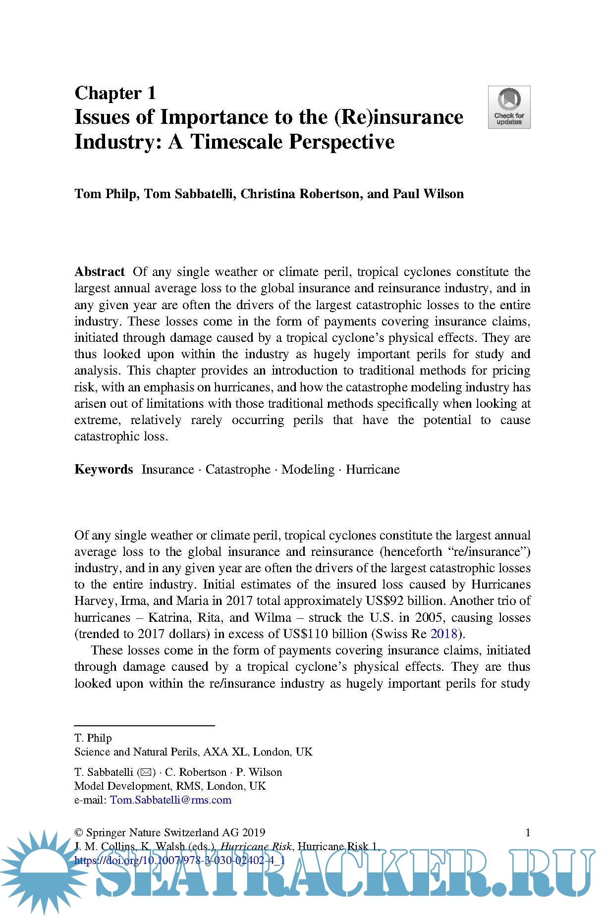 Description: This book details the outcomes of new research focusing on climate risk related to hurricanes. Topics include numerical simulation of tropical cyclones, through tropical cyclone hazard estimation to damage estimates and their implications for commercial risk. Inspired by the 6th International Summit on Hurricanes and Climate Change: From Hazard to Impact, this book brings together leading international academics and researchers, and provides a source reference for both risk managers and climate scientists for research on the interface between tropical cyclones, climate and risk.