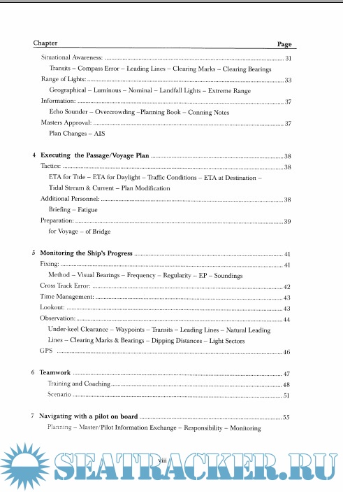 Description: No go areas - Margins of safety - Safety water-Ocean tracks - Coastal tracks - Chart changes - Deviation - Under keel clearance - Altering course - Parallel indexing - ARPA mapping - Position fixing - Situational awareness