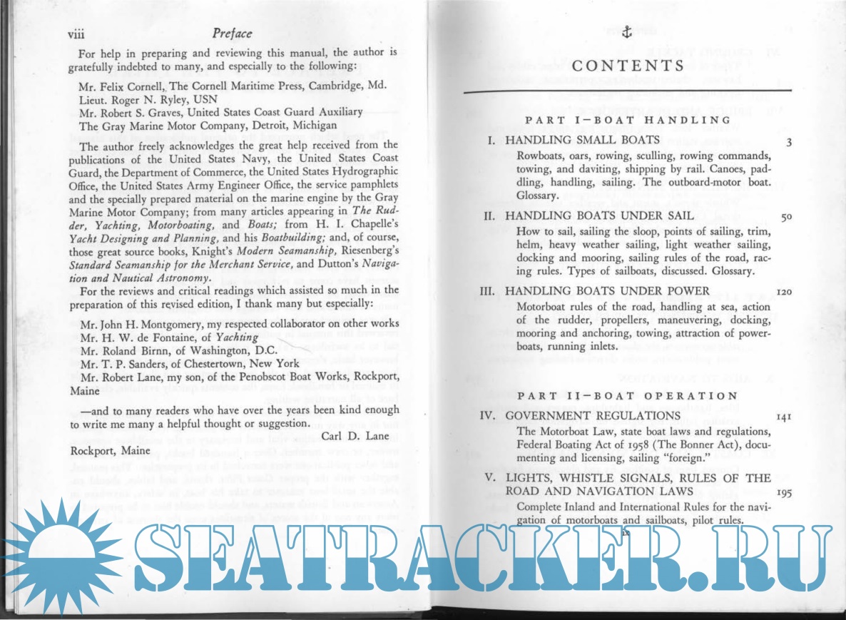 Year: 1962 Language: english Author: Lane C.D. Genre: Manual Publisher: W.W. Norton & Company Format: PDF Quality: Scanned pages Pages count: 643 Description: This book is a complete manual on boat handling, operation, maintenance, and seamanship. Dealing with everything required for successful boat sailing and management, this volume will be of considerable utility to novice and seasoned enthusiasts alike, and would make for a fantastic addition to collections of allied literature. Contents include: “Handling Boats Under Oars”, “Handling Boars Under Sail”, “Handling Boats Under Power”, “Government Regulation”, “Rules of the Road”, “Ground Tackle”, “Bridge and Quarter-Deck”, “Signals and Signalling”, “The Instruments of Piloting”, “Aids to Navigation”, “Navigation”, “Boat Maintenance”, “Marlinspike Seamanship”, etc. Many vintage books such as this are becoming increasingly scarce and expensive. We are republishing this volume now in an affordable, high-quality edition complete with a specially commissioned new introduction on sailing.
