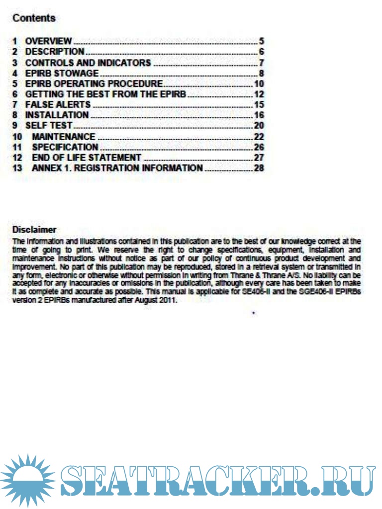 Description: This Emergency Position Indicating Radio Beacon (EPIRB) is intended for carriage on