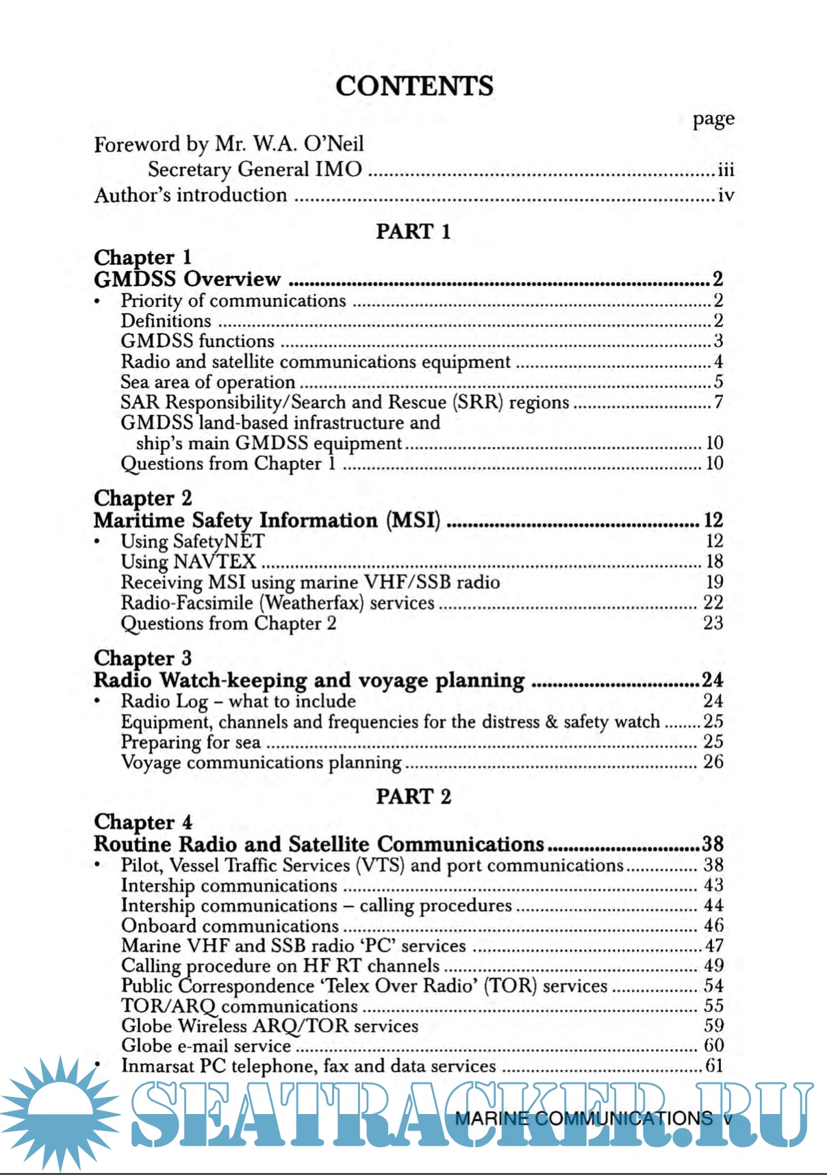 - Part 1 provides an overview of the GMDSS; explains how to receive 'Maritime Safety Information' (weather/navigational information, and shore-to-ship Search & Rescue (SAR) messages) and introduces the concept of a 'communications plan' for each voyage - for receiving the required maritime safety information, maintaining the correct radio watch and using ship reporting systems. Regular tests and checks that should be recorded in the radio log are covered in this part.