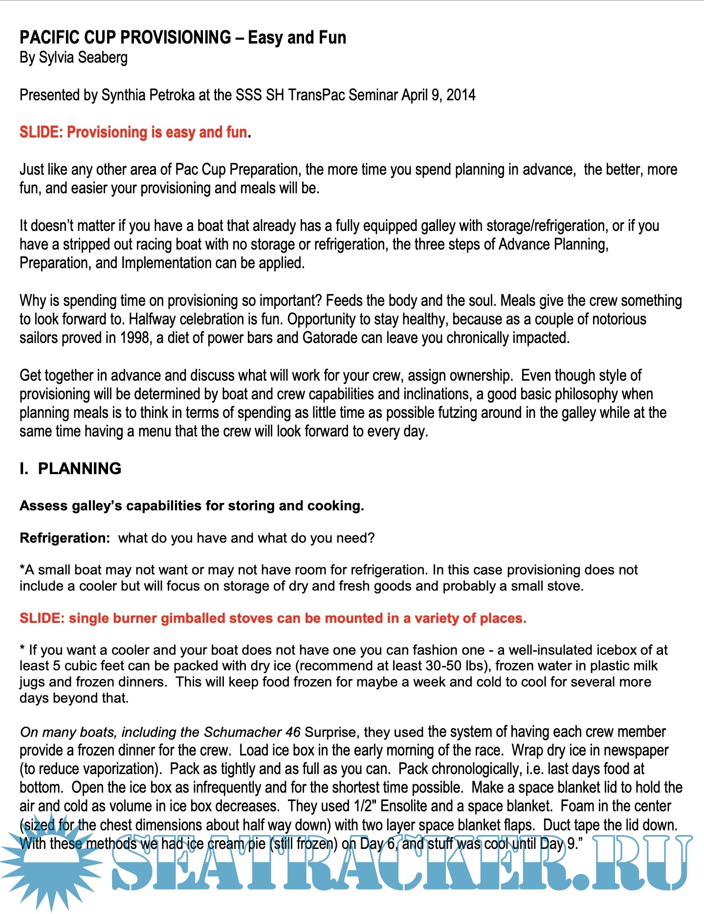 • Preparation – get the boat ready for storage and cooking, prep frozen and bagged meals in advance