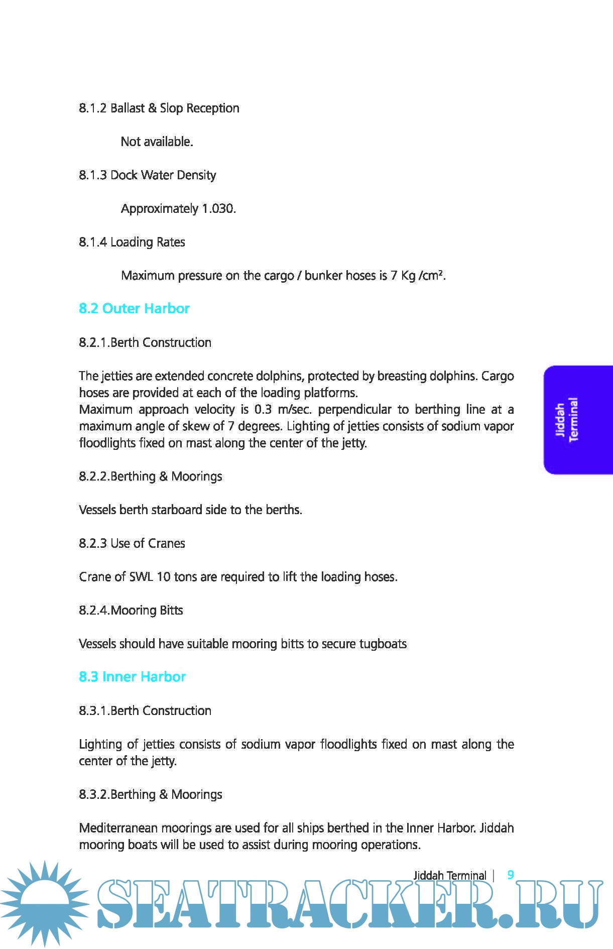 Description: This book is designed as a reference work for the purpose of acquainting Owners, Charterers, Masters of vessels and others with the general conditions, rules, regulations, facilities and available services at all Saudi Aramco Terminals. Every vessel which arrives at any Saudi Aramco Port or Terminal must have a copy of this book on board which is obtainable through the vessel’s agent. Every Master wishing to berth at any Saudi Aramco port or terminal must contract to comply with all the rules and regulations contained herein.This book does not replace or modify official publications covering the waters, areas, hazards or other subjects to which it pertains, nor is it intended for such purposes. The information contained herein is believed to be accurate at the time of going to press but Saudi Aramco makes no warranties and assumes no responsibilities regarding this book or any other information which may appear in supplemental publications, additions or corrections supplied by Saudi Aramco.