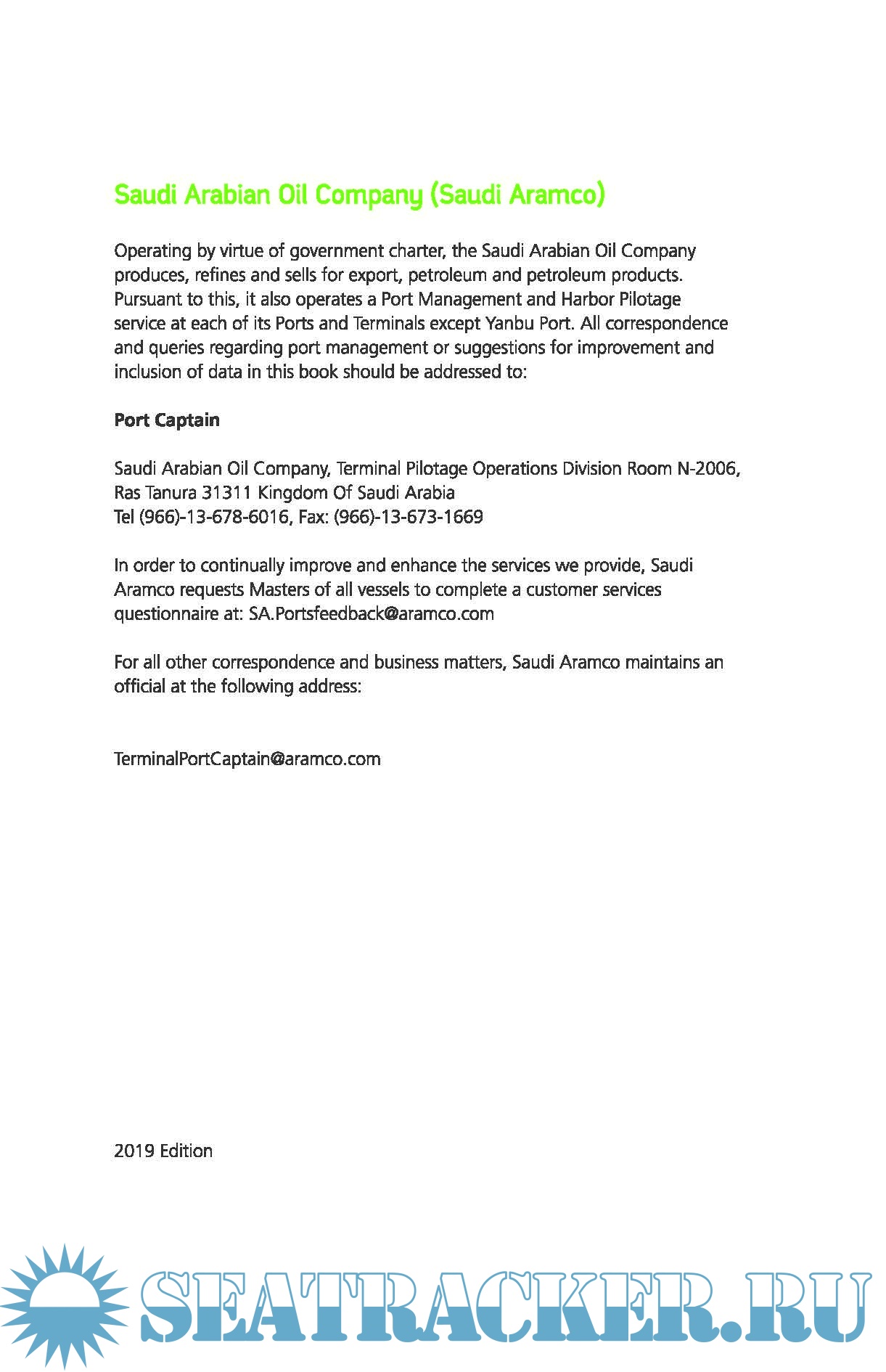 Saudi Aramco Ports and Terminals - Rules Regulations and General Information, 2019 Edition