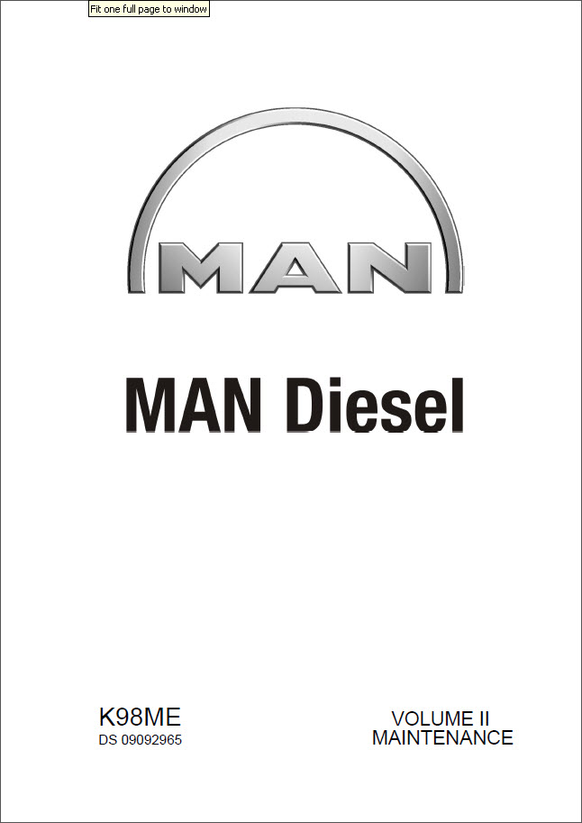 Year: 2006 Language: english Author: MAN Diesel A/S Genre: MANUAL Publisher: MAN Diesel A/S Format: PDF Quality: OCR without errors Number of pages: 865 Description: Instructions for Main Engines This book forms part of a set of books consisting of three volumes entitled: Vol. I OPERATION Vol. II MAINTENANCE Vol. III COMPONENTS, DESCRIPTIONS The purpose of these books is to provide general guidance on operation and maintenance and to describe the constructional features of a standard version of an MAN B&W main diesel engine. Deviations may be found in a specific plant. In addition, the books can be used for reference purposes, for instance in correspondence and when ordering spare parts. It is essential that the following data is stated in spare parts orders as it is used by us to ensure the supply of the correct parts for the individual engines: Name of vessel / Engine No. built by / Plate No. / Part No. / Quantity required (and description) / Example: M/S Nybo – 7730 B&W – P90201-0036 – 059 / 10 off (piston ring) To ensure optimum efficiency, reliability and lifetime of the engine and its components, only original spare parts should be used when replacing parts on the engine. When used in texts and illustrations, the designation “D” refers to the information given on the data sheets inserted in the respective books. Reliable and economical operation of the diesel engines is conditional upon its correct operation and maintenance in accordance with MAN Diesel’ instructions. Emissions related maintenance of the diesel engine shall be performed as specified in MAN Diesel’ instructions and any additional instructions to that effect included in the Technical File. Consequently, it is essential that the engine room personnel are fully acquainted with the contents of this book and, in respect of instructions on emissions related maintenance of the diesel engine, also the additional instructions to that effect set out in the Technical File. This book is subject to copyright protection, and should therefore not, in whole or in part, be copied, reproduced, made public or in any other way made available to a third party without the written consent of this effect from MAN Diesel. The Checking and Maintenance Schedules indicate the intervals at which it is deemed appropriate to inspect the individual components of the engine and to carry out overhauls, if necessary, based on the engine condition or on time criteria. The stated Normal hours of service should only be used as a guide, as differences in the actual service conditions, the quality of the fuel oil or lubricating oil, the treatment of cooling water, etc. will decisively influence the actual service results, and thus the intervals between necessary overhauling. Design modifications may necessitate a revision of the instructions, in which case the revised instructions and changed overhauling intervals, if any, will apply and supersede those originally issued (see e.g our Service Letters). In addition to the checking and overhauling intervals stated in this schedule, please note that the periodical survey requirements of the classification society may require additional checks and overhauls to be carried out. For further information please refer to the classification society. The procedures are divided into three categories: Condition checking procedures marked under the heading Normal hours of service with a C, deal with the service condition of a number of engine components, and form the basis for estimating whether further overhauling is necessary. In a number of cases the condition checking procedures refer to Volume I of the instruction book, in which more detailed descriptions and working procedures can be found. Condition-based overhauling procedures are those procedures which under the heading Normal hours of service are marked with an O, and opposite which, under the heading Overhaul to be based on procedure No. (column P), a procedure number is stated. This procedure number normally refers to one of the above condition checking procedures which form the basis of the overhaul. For this reason, the intervals stated are for guidance only. Time-based overhauling procedures also marked with an O under the headings Normal hours of service or Based on observations, are the procedures where an actual basis for estimation is lacking. It is recommended, therefore, to carry out these procedures at the overhauling intervals stated as a basis. Where a symbol O or C is indicated in Based on observations (column B), this is due to the fact that special service conditions may make checking or overhauling necessary beyond the actual standard schedules indicated.
