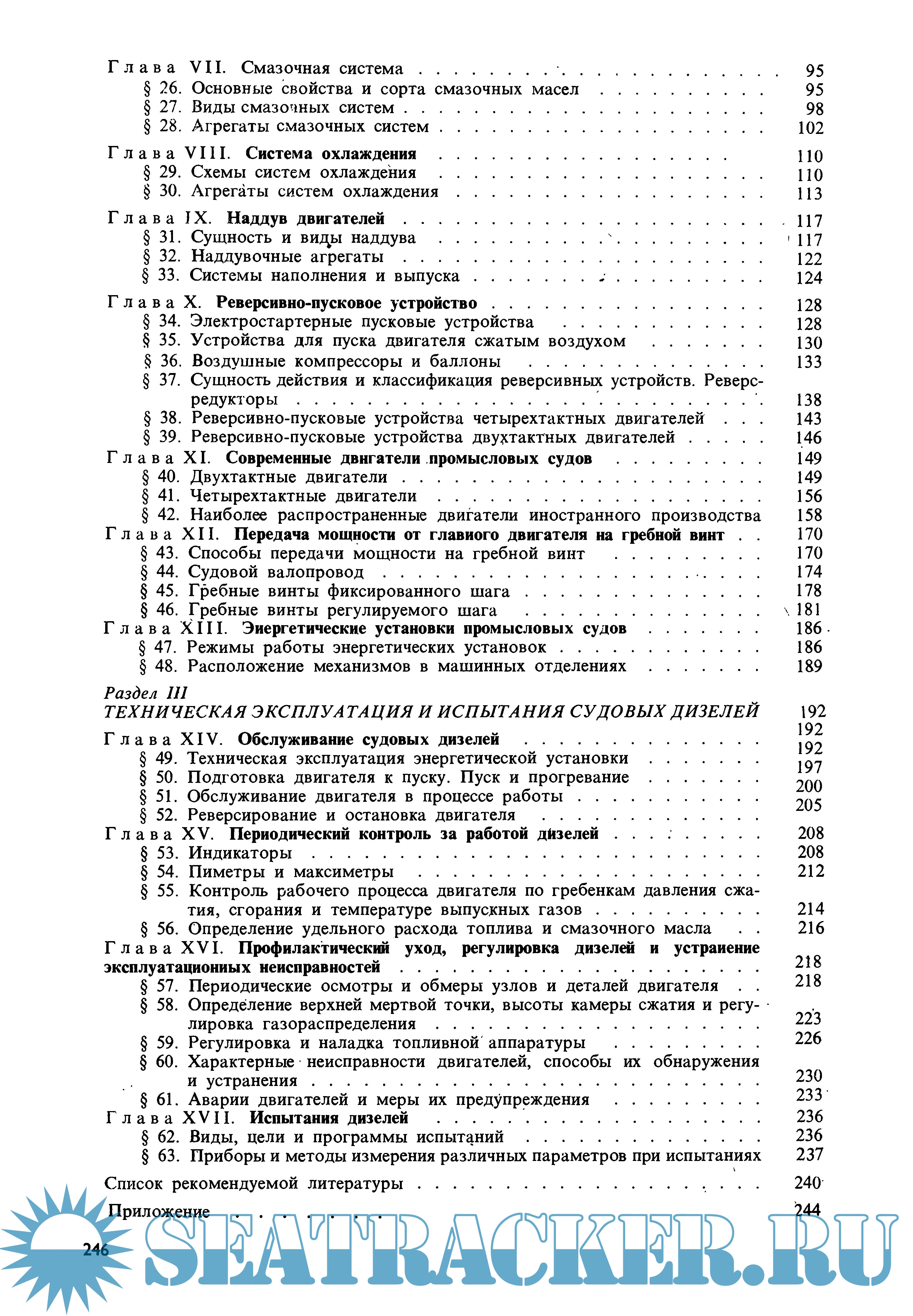 Описание: В книге изложены основы теории и принципы действия двигателей внутреннего сгорания. Описаны конструкция и эксплуатация двигателей, устанавливаемых на ботах, сейнерах, траулерах, рефрижераторах, плавбазах и других судах флота рыбной промышленности. Дана характеристика топлива, освещены вопросы его сгорания. Рассмотрены типы энергетических установок промысловых судов, устройство судового валопровода и движители.