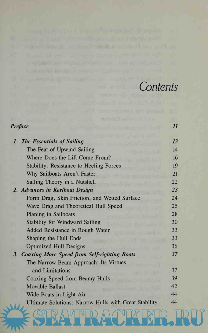 Year: 1990 Language: english Author: Donaldson S. Genre: Guide Publisher: G.P. Putnam's Sons ISBN: 0-399-13506-5 Format: PDF Quality: Scanned pages Pages count: 241 Description: The accelerated pace of technological advancement in sailing today is viewed by most amateur sailors as either exciting or alarming, but few are genuinely indifferent to the rapid changes in our oncetraditional recreational pursuit. There is little doubt that those who deplore these changes will eventually have to reconcile themselves to them. The escalating political and economic importance of major transoceanic races, Olympic competition, the America's Cup, and the recent emergence of full-fledged professional racing serve notice that the pace of sailboat development is certain to continue fast and furious. This book is intended to help the casual recreational sailor come to grips with (and, I hope, appreciate a bit more) the leading edge of sailing technology. It undertakes to show how recent developments fit into a framework of fundamental principles and how the latest innovations build upon the best technology of an earlier era. It is not intended as an encyclopedic guide to everything that's new in sailing, but rather as an introduction for those who would like to know a little more about how contemporary boats really work. Aficionados of automobile racing like to point out that many major improvements in automotive engineering originated on the track. The same argument when applied to sailing is equally compelling. Over the past thirty years a majority of the advances in sailing hull design, construction, rigging, spars, and sails were pioneered on the racecourse. In a remarkable number of cases, the inventions inspired by competition have ended up being used on many, if not most, recreational sailboats. For this reason alone, no one with a genuine interest in sailing can ignore the progress currently being made by serious racing sailors, designers, boatbuilders, and sailmakers. If history shows any inclination to repeat itself, the cruising and daysailing boats of the next decade will incorporate many of the ideas being tested and refined by today's racing sailors, particularly those who compete offshore and shorthanded. Thus, while this is not a book about sailboat racing, racing is indirectly responsible for much of its content. I make no apologies for this, and sincerely hope that even those of you who consider yourselves dyed-in-the-wool cruisers will elect to read on.