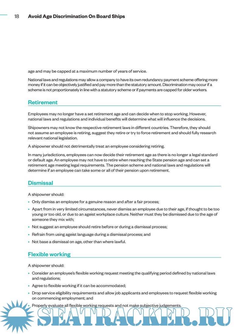 Year: 2020 Language: english Author: ICS Genre: Guide Publisher: Marisec Publishers Format: PDF Quality: eBook Pages count: 32 Description: This guidance has been produced to help to eliminate age discrimination and to improve the working environment on board ships. Age discrimination (ageism) is a potential form of unfair treatment at workgiven that the age gap between employees in the workplace can now be as much as 50 years. Under the International Labour Organization (ILO) Maritime Labour Convention 2006 each member state must satisfy itself that the provisions of its laws and regulations respect the fundamental right to the elimination of all forms of discrimination in respect of employment and occupation. Age discrimination can seriously affect the physical and emotional health of employees and job applicants. It can lead to decreased motivation and increased sickness and can compromise cohesive and effective teamwork. It can also negatively affect companies resulting in potential organisational, economic and legal consequences.