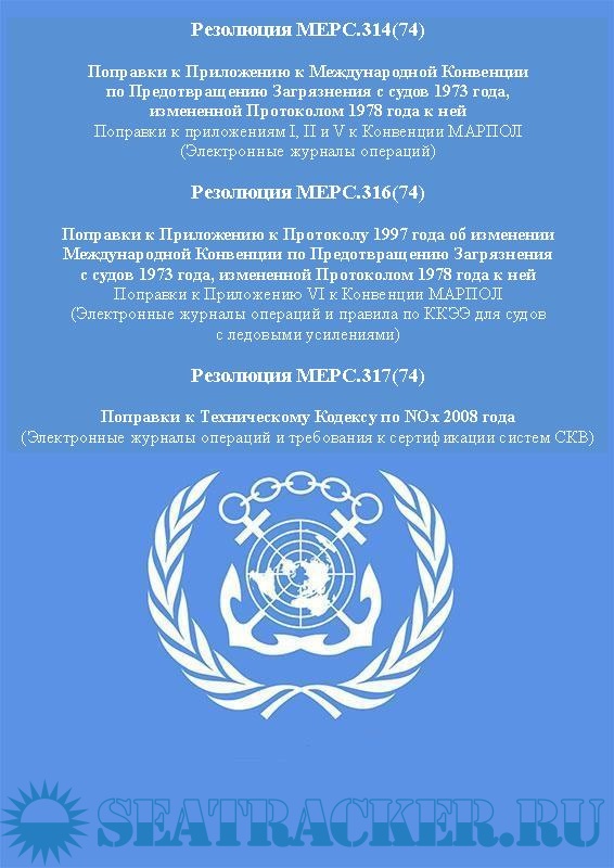 Резолюции КЗМС: MEPC.314(74); MEPC.316(74); MEPC.317(74) – Поправки к Приложениям I, II, V, VI МК МАРПОЛ и Техническому Кодексу по NOx