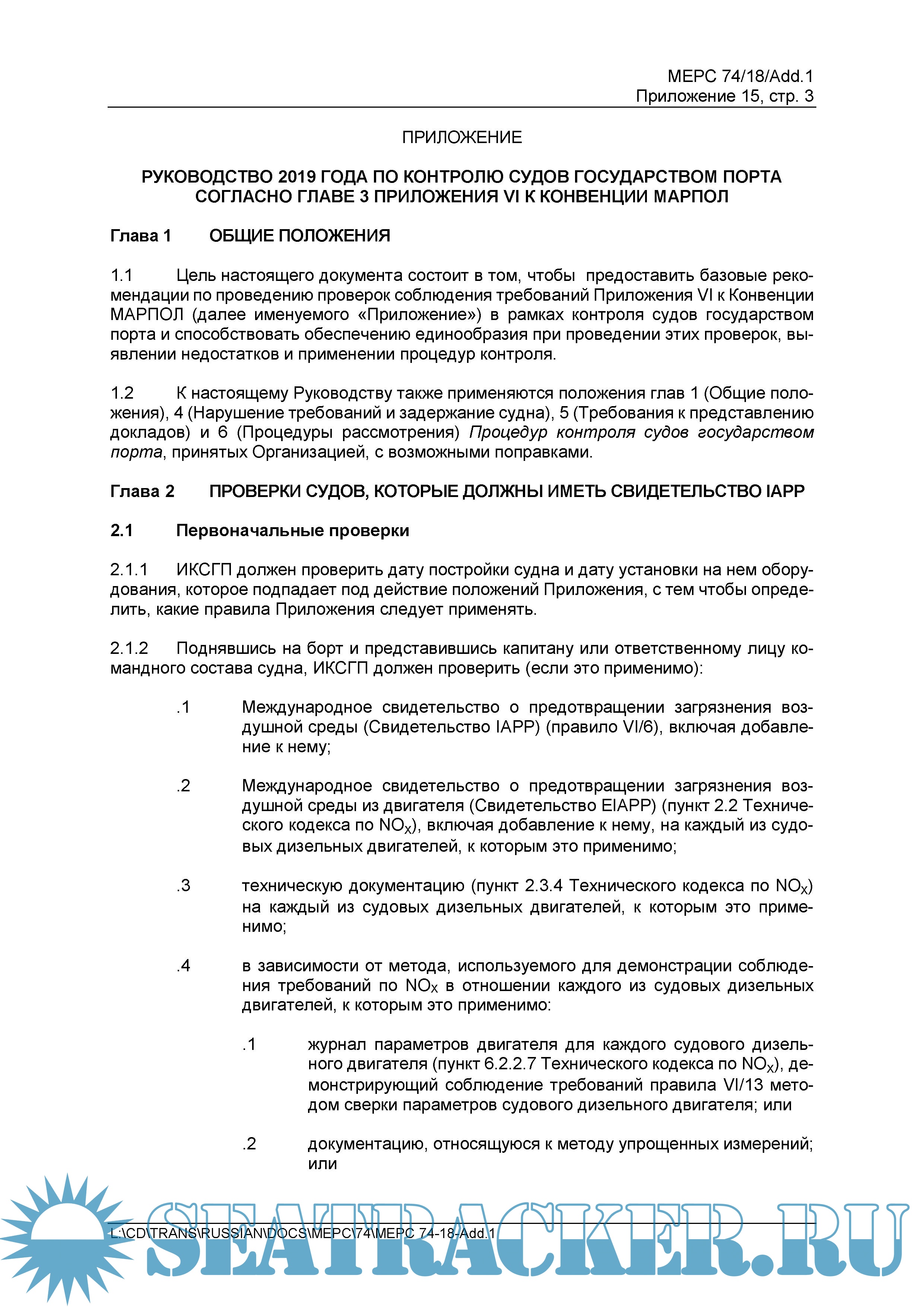 РУКОВОДСТВО 2019 ГОДА ПО КОНТРОЛЮ СУДОВ ГОСУДАРСТВОМ ПОРТА СОГЛАСНО ГЛАВЕ 3 ПРИЛОЖЕНИЯ VI К КОНВЕНЦИИ МАРПОЛ