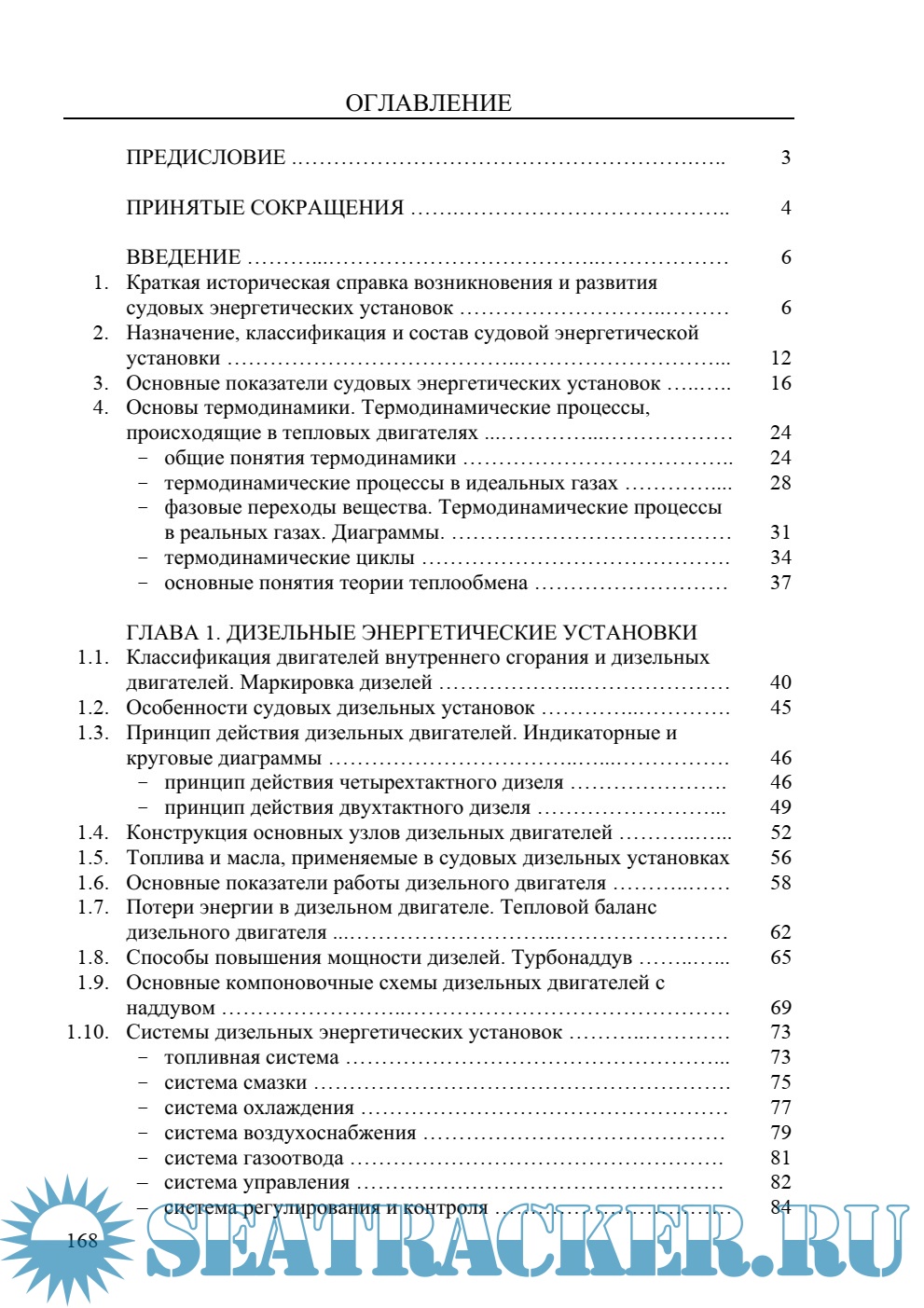 Дальнейший курс состоит из глав, в каждой из которых рассматриваются различные типы энергетических установок. Глава 1 посвящена дизельным, глава 2 - газотурбинным, глава 3 - котлотурбннным энергетическим установкам. В каждой главе рассмотрены назначение, классификация, принцип действия и устройство основных составных частей данного типа установки; основы теории рабочих процессов, тепловые балансы и характеристики потерь энергии, способы уменьшения потерь энергии и повышения КПД. наиболее часто встречающиеся компоновочные схемы, принципы построения систем, обслуживающих работу данного типа СЭУ.