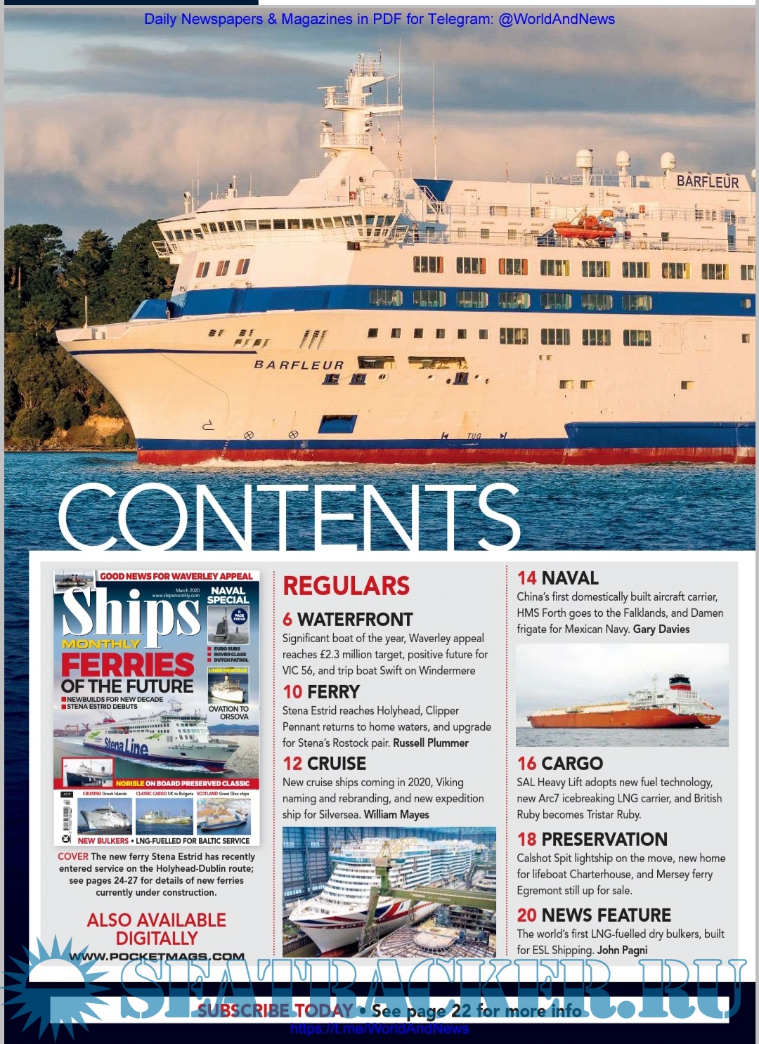 Ships Monthly provides news and features for ship enthusiasts and maritime professionals, including reports on the ferry, cruise, new building and cargo ship scene as well as navies across the world.