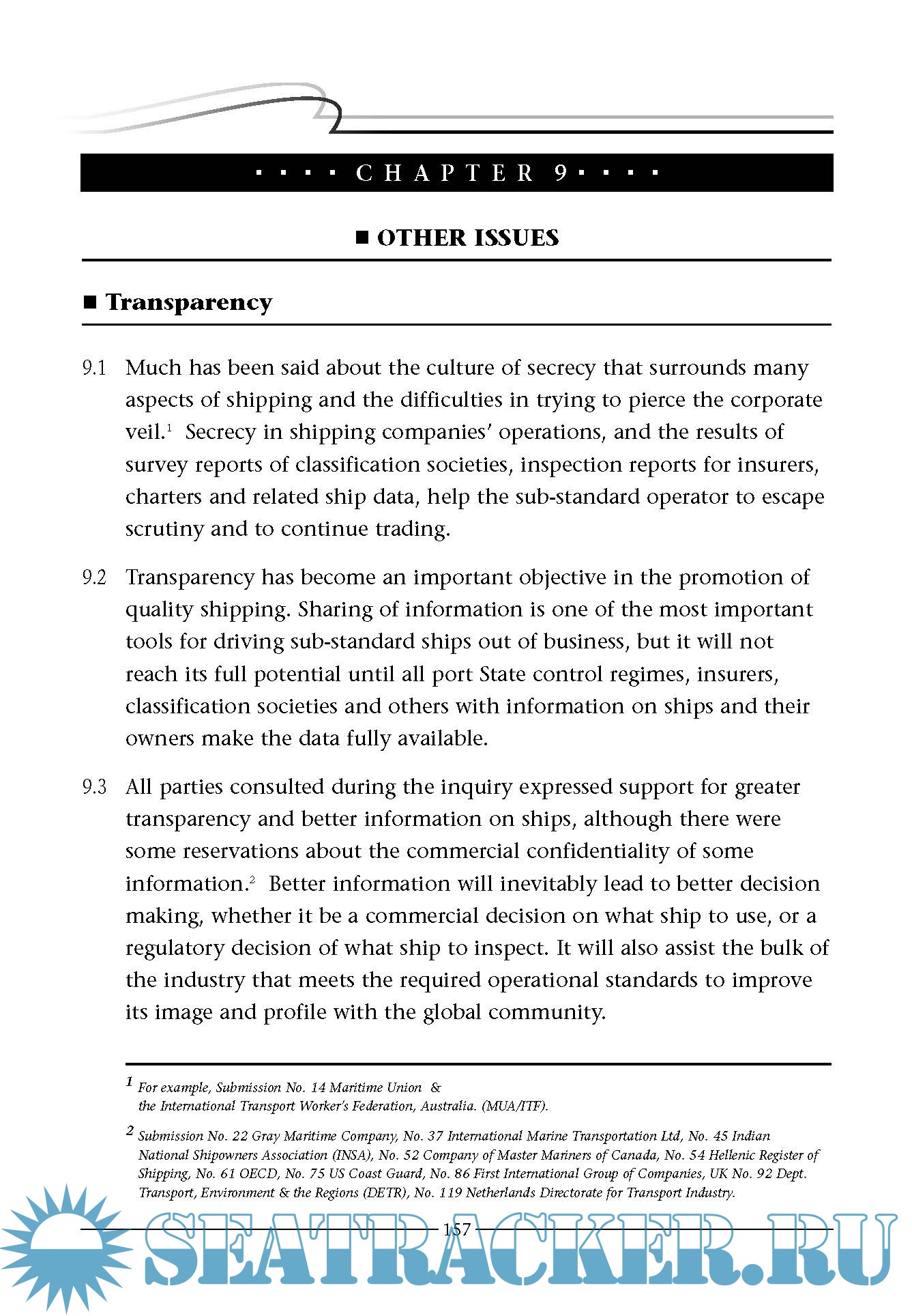 4. The various players within the shipping industry who influence the safety of shipping and the treatment of seafarers are described. They identify the measures being taken by those bodies and organisations to address safety and seafarers’ welfare concerns.