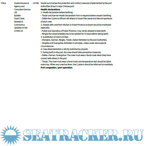 Description: In response to the 2019-nCoV novel coronavirus outbreak, a number of countries, ports and organisations are publishing details of the measures being put in place.