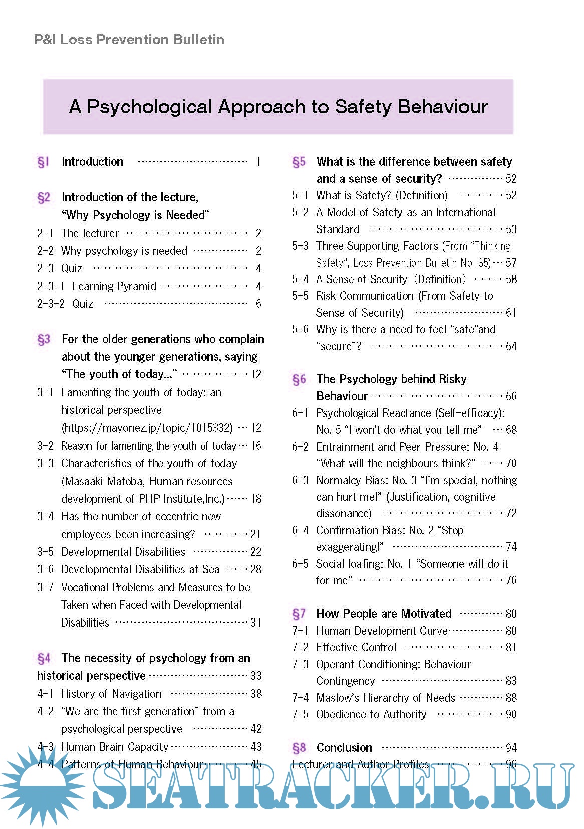 A Psychological Approach to Safety Behaviour , P&I Loss Prevention Bulletin Vol.46