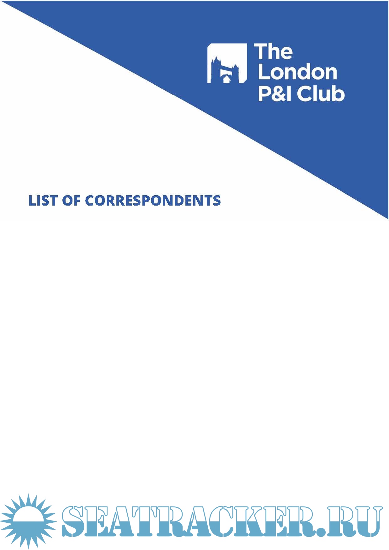 Rules 2020 , List of Correspondents, Charterers Terms & Conditions - uk P and I Club [2020, PDF]