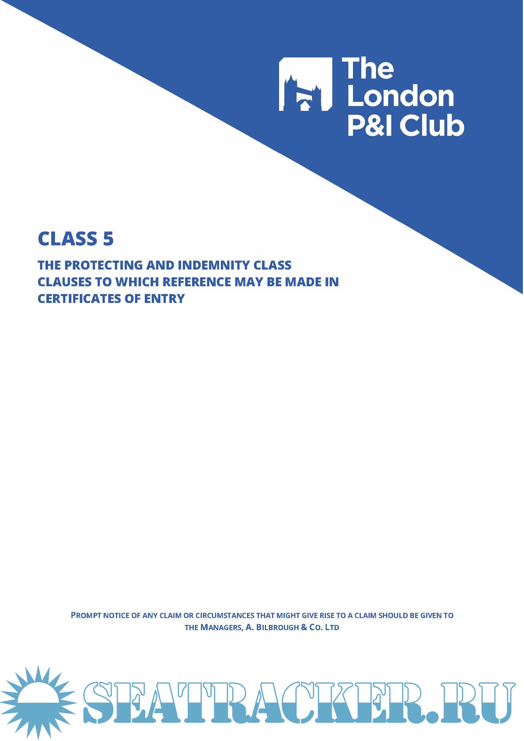 CLASS 5 The Protecting and Indemnity Class Clauses to which reference may be made in certificates of Entry