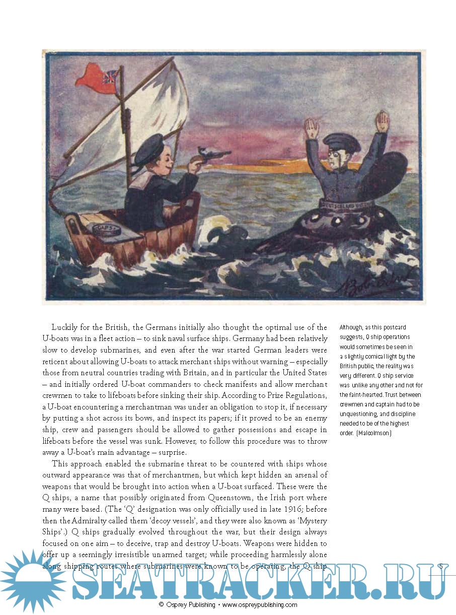 Description: Q ships came in all shapes and sizes – coastal steamer, trawler, barque, yacht or schooner – but all had to look harmless in order to lure their opponents to the surface and encourage them to attack. Armaments differed according to ship size; steamers commonly had 4in guns mounted amidships and in the bow, trawlers 3-pdrs and sailing ships 12-pdrs. Those who served on Q ships had to accept that their U-boat opponents would be able to strike first. Q ship captains kept ready a 'panic crew', which was trained to act out an elaborate evacuation to convince the U-boat commander that the ship was being abandoned by its crew. The Q ship captain would remain behind with a handful of other crewmen manning the guns, which remained hidden until the most opportune time to unmask and engage the U-boat. The Q ship concept had emerged early in the war when no other method seemed likely to counter the U-boat threat, and flourished until new technologies and tactics were developed, tested and implemented.