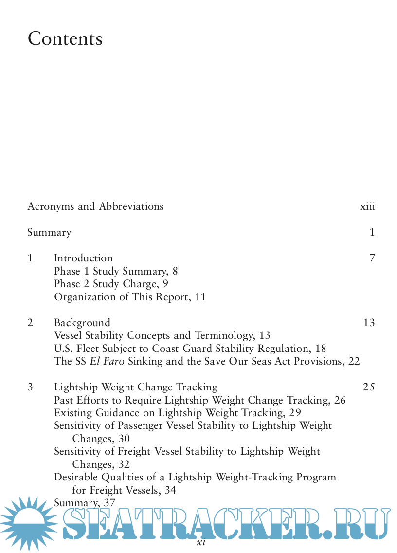 The USCG asked for the review to identify and suggest options to make and keep stability requirements current, align them better with interna- tional standards, and improve their consistency and clarity. The National Academies formed a study committee comprised of members with expertise in naval architecture, vessel design and construction, regulation and inspec- tion activity, safety standards development, and marine transportation and vessel operations.