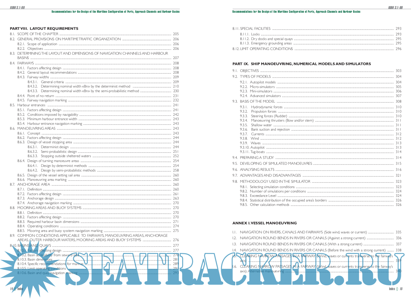 These Recommendations reflect this modernizing effort and make use of the whole rich flow of technology currently existing in the field of vessel manoeuvrability and of the interaction of such vessels with their physical environment (wind, waves and current).To this effect, a suitable path is opened for the rational use of probabilistic methods, simulation techniques and scale model testing for full characterization of the most frequent manoeuvring of vessels operating in ports.